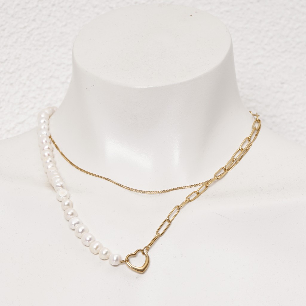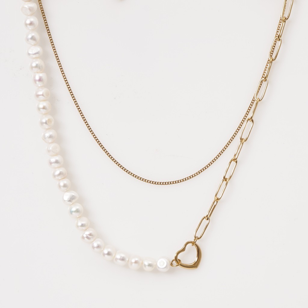 stainless steel necklace with pearls (surgical steel) nickel-free