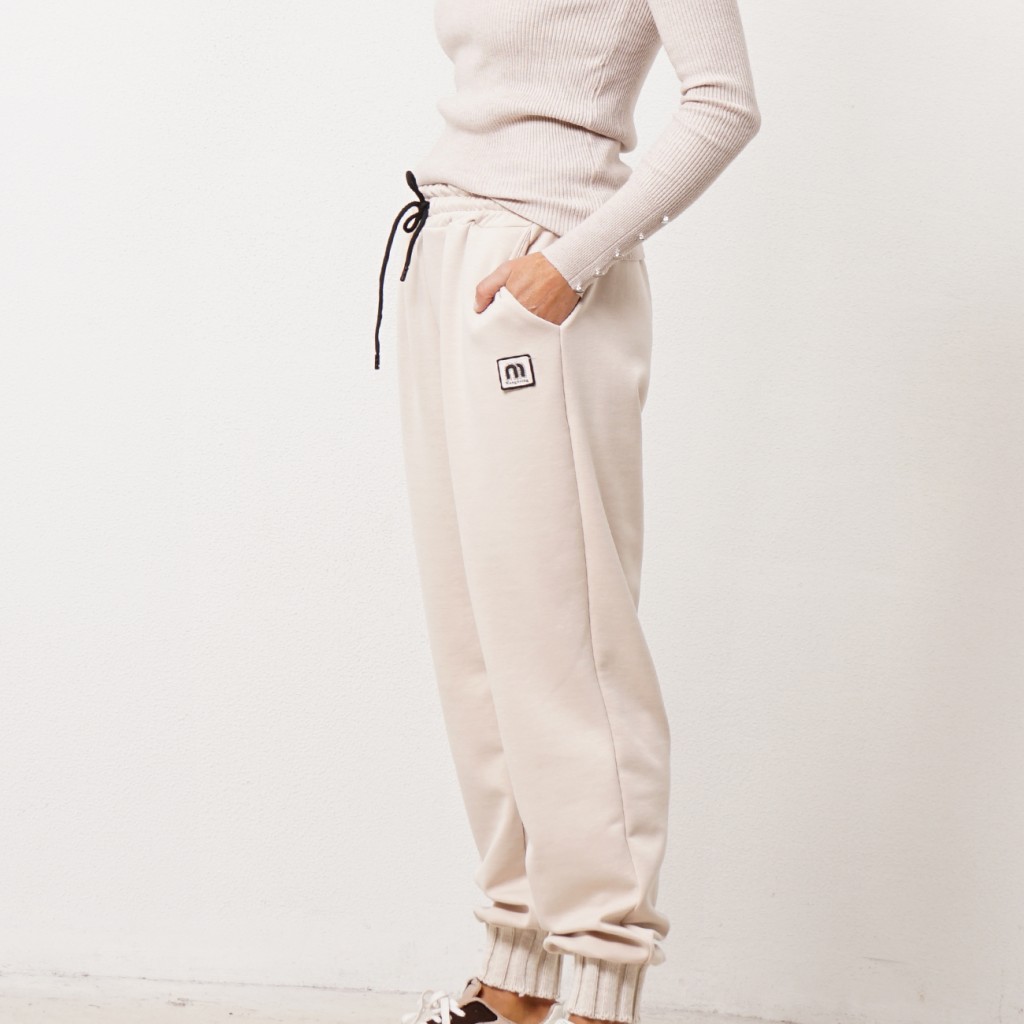 Neoprene knit pants with knit appliqué
