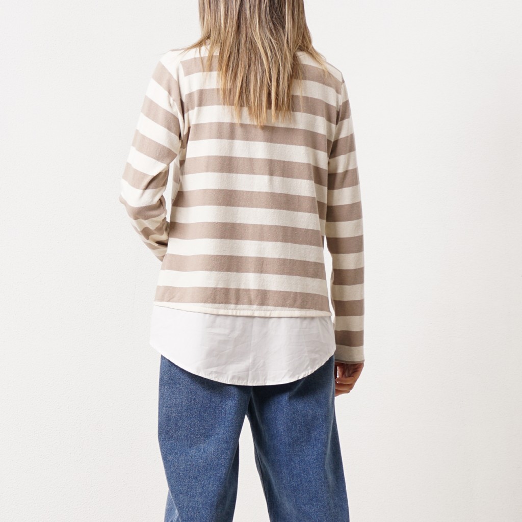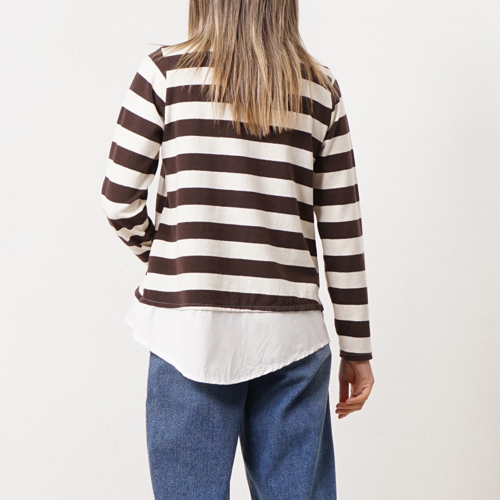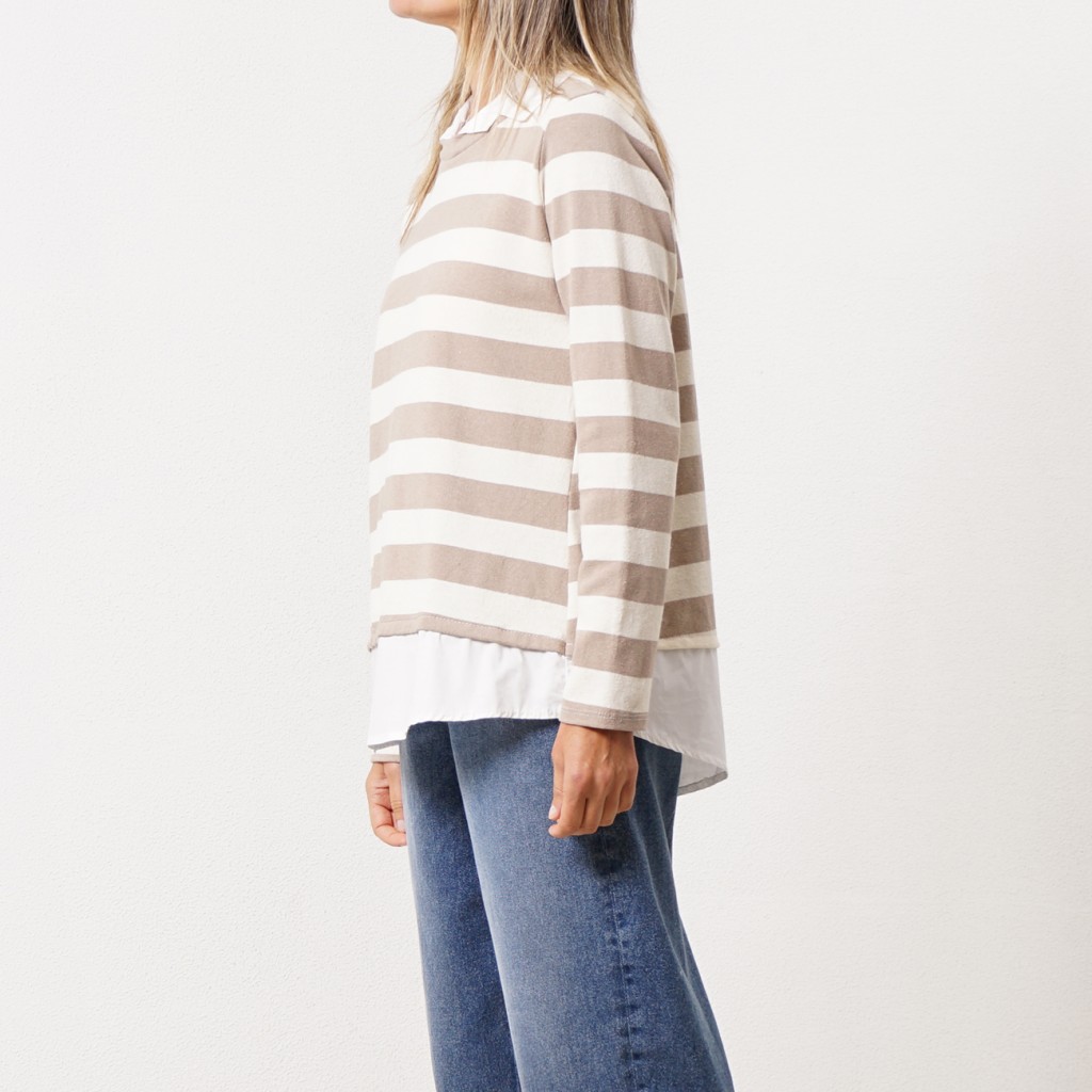Cotton ribbing sweatshirt (rapport) with shirt collar detail and flaps