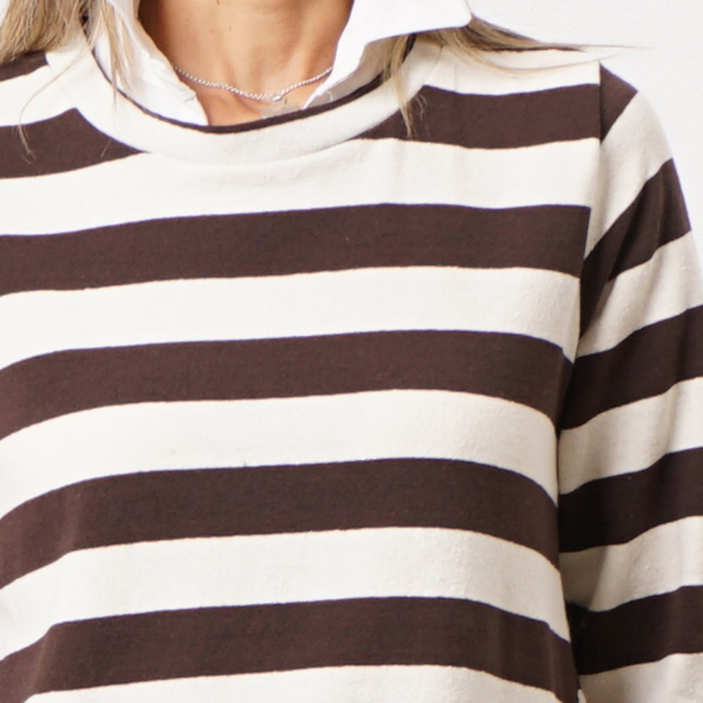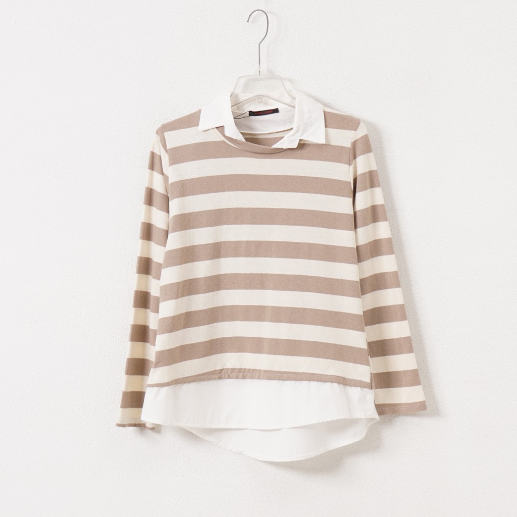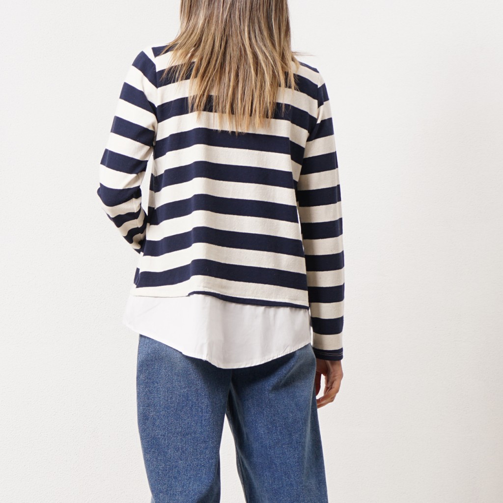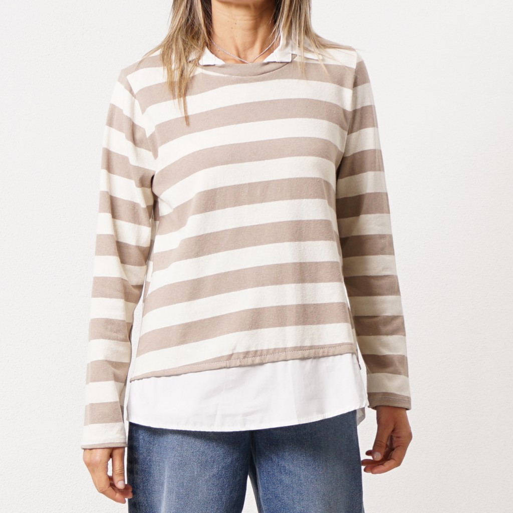 Cotton ribbing sweatshirt (rapport) with shirt collar detail and flaps