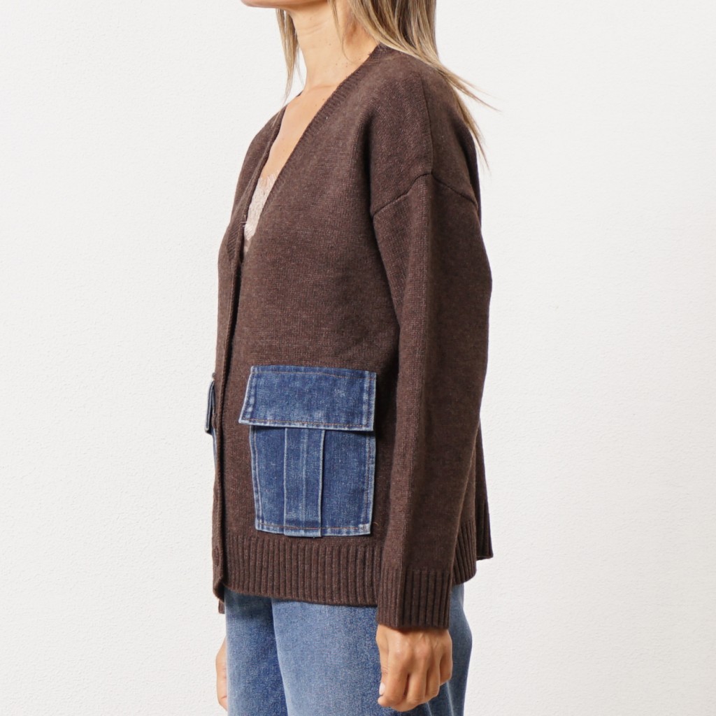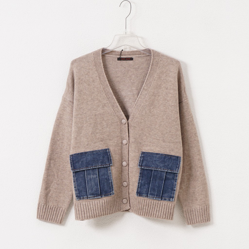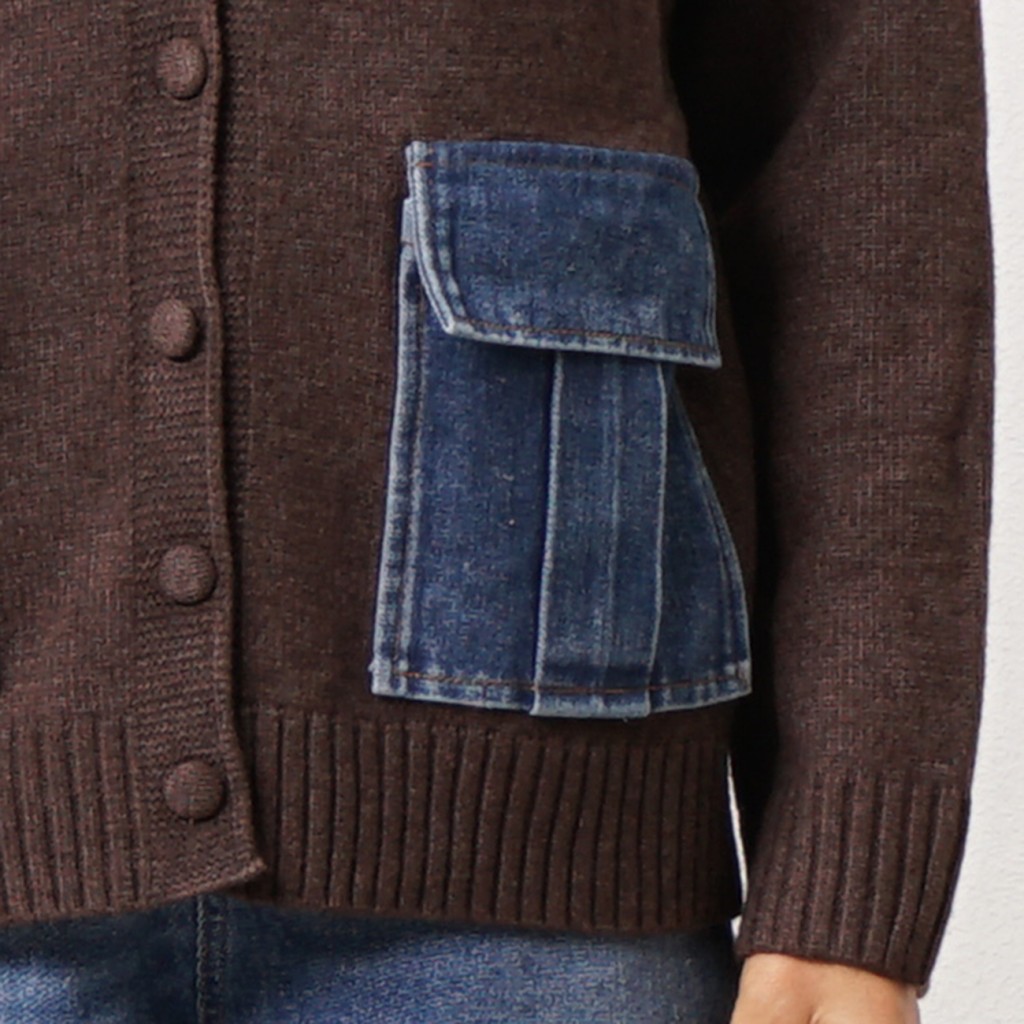 Knitted jacket with denim appliqué Knitted jacket with denim appliqué Knitted jacket with denim appliqué Knitted jacket with denim appliqué Knitted jacket with denim appliqué