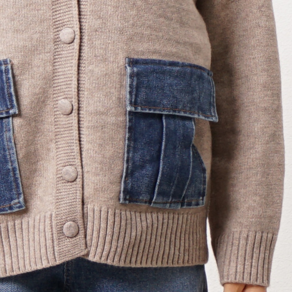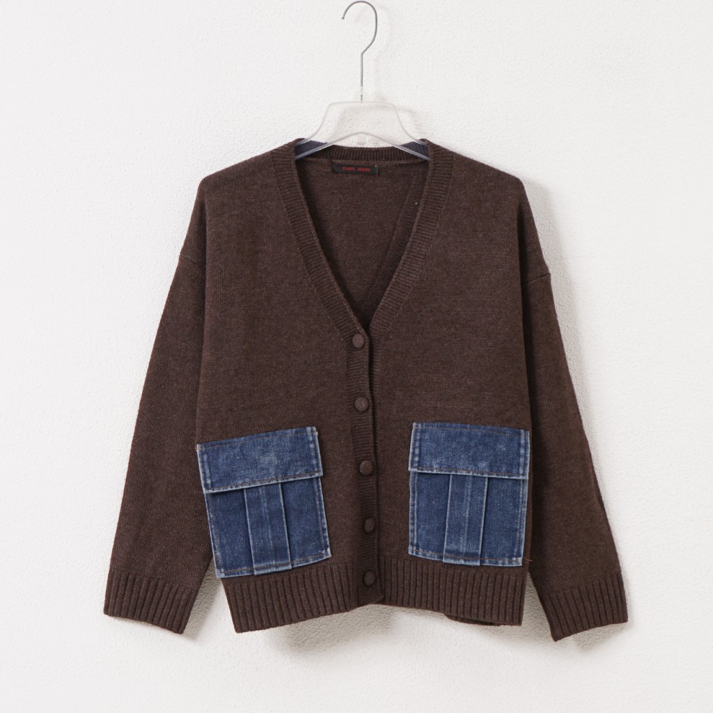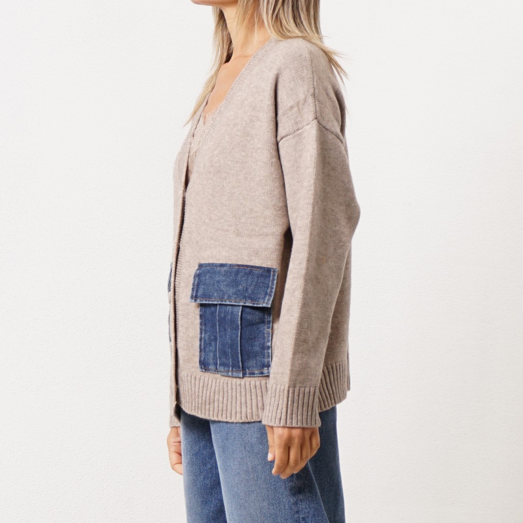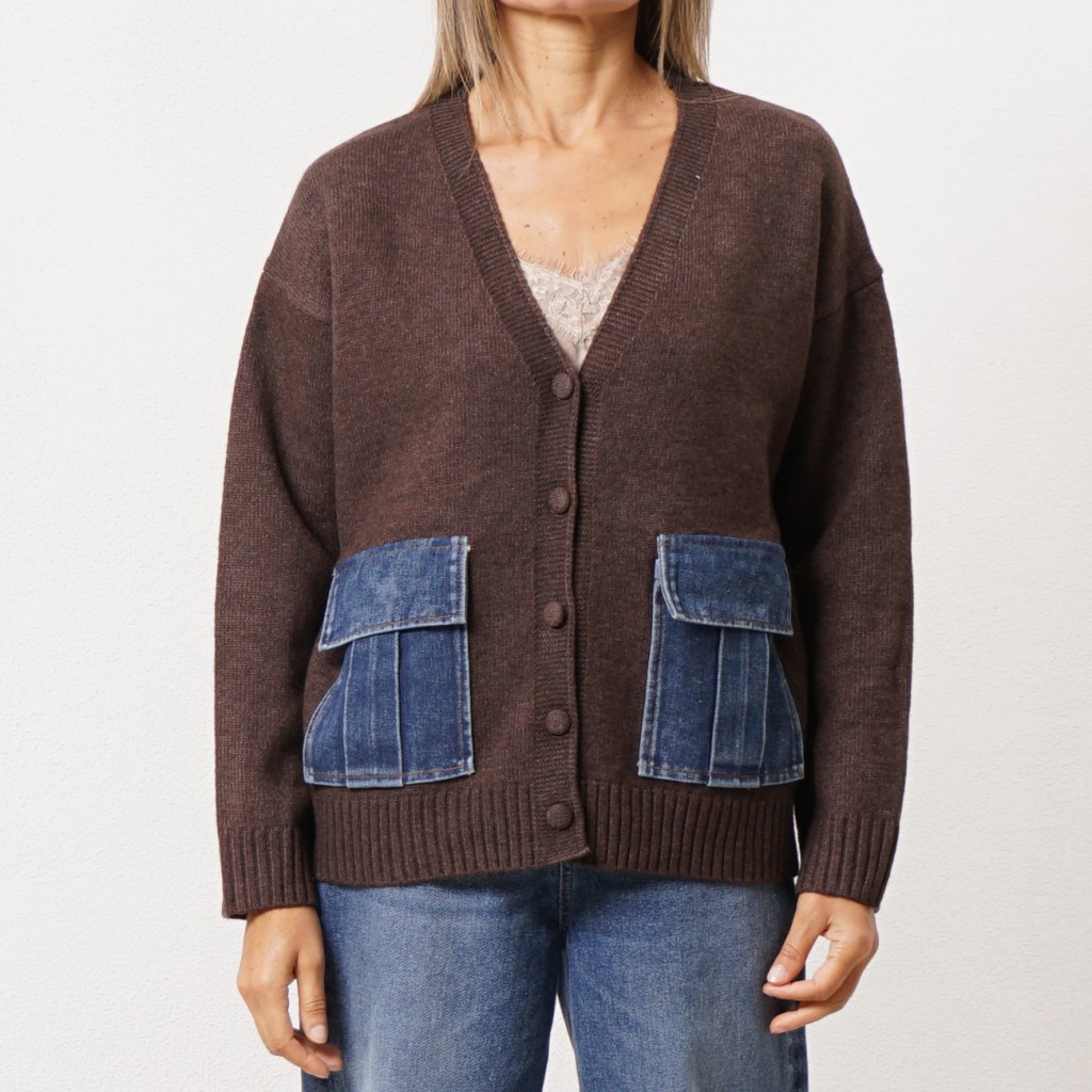Knitted jacket with denim appliqué Knitted jacket with denim appliqué Knitted jacket with denim appliqué Knitted jacket with denim appliqué Knitted jacket with denim appliqué