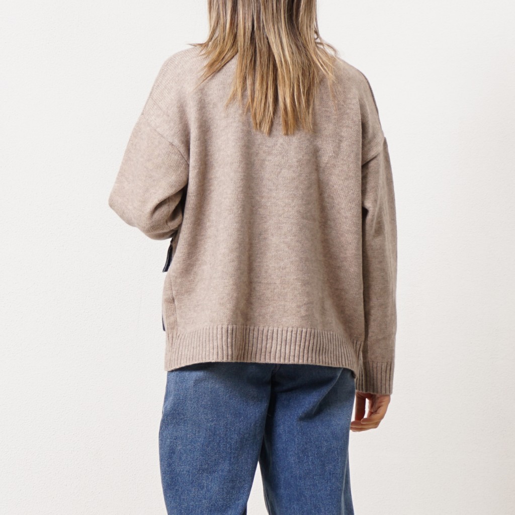 Knitted jacket with denim appliqué