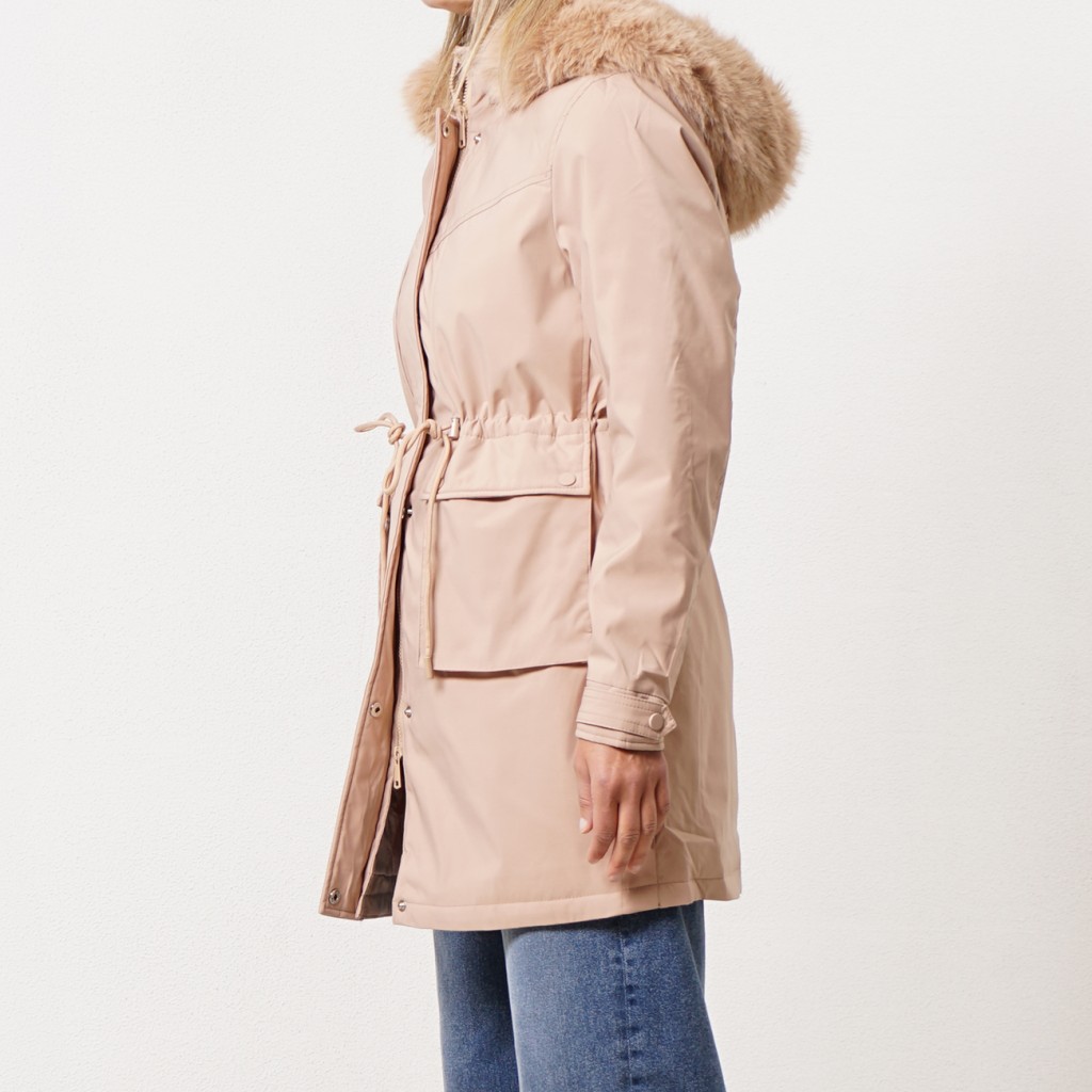 fur coat with hood