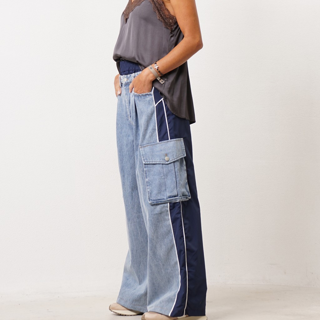 Denim wide-leg pants (fabric blend)