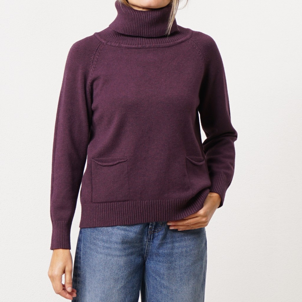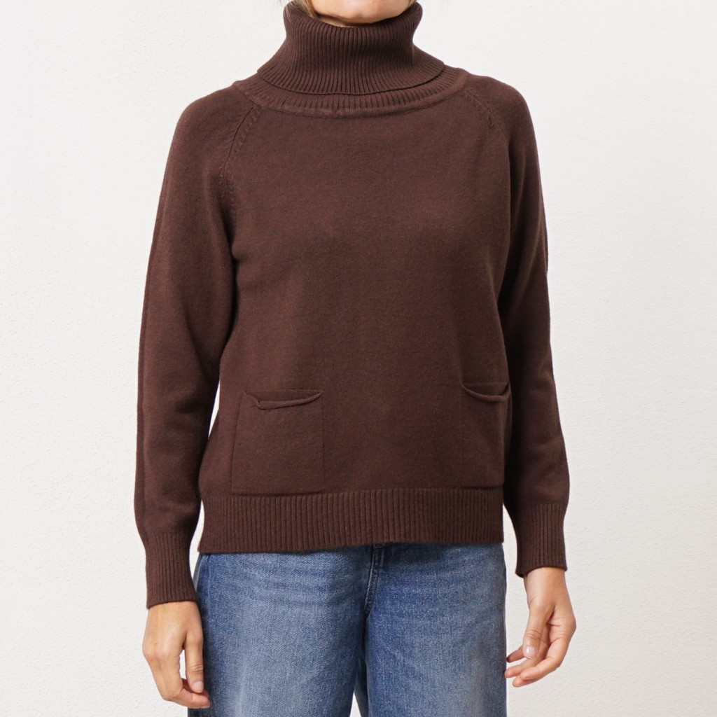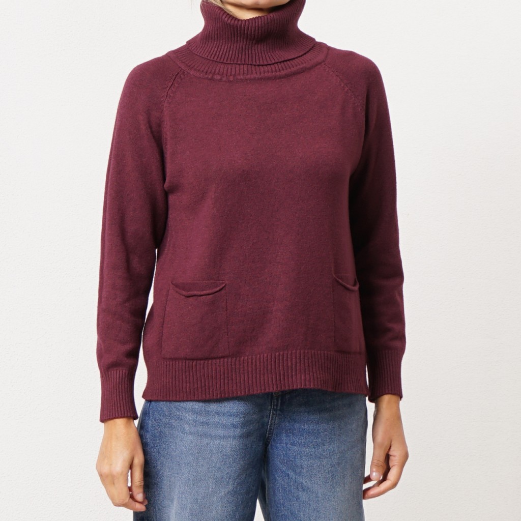 camisola em tricôt gola alta c/ bolsos