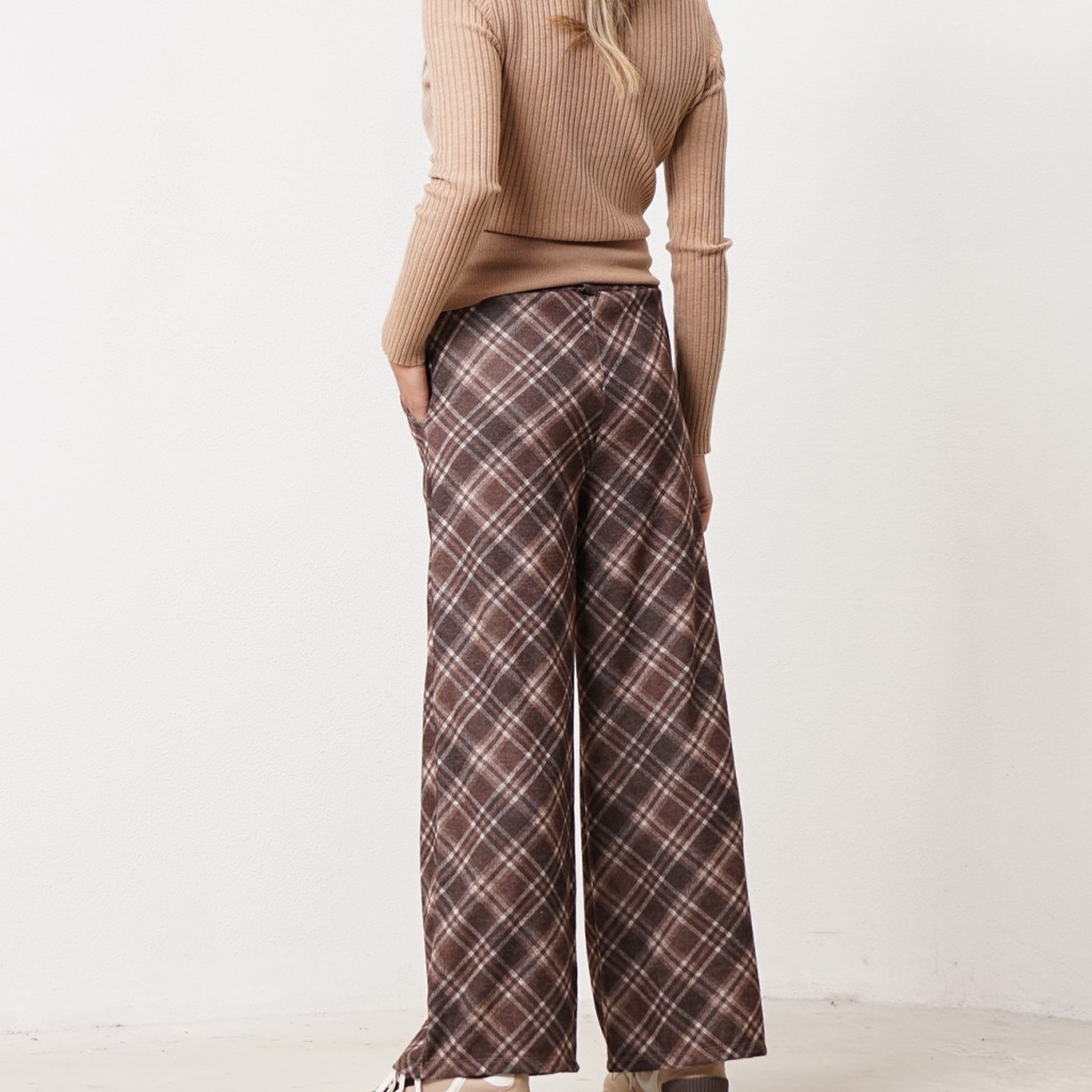 Wide-leg pants in knit fabric with elastane