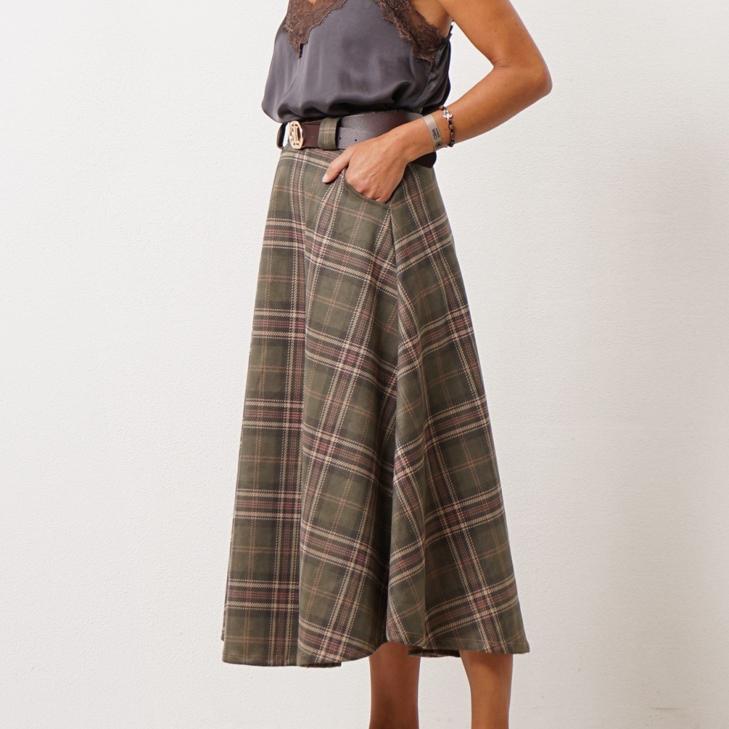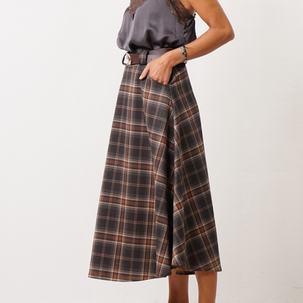 Peach skin flared skirt