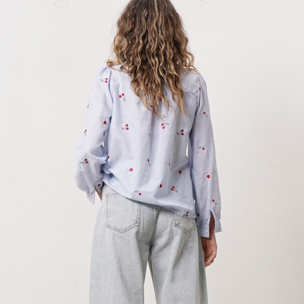 Embroidered striped blouse with ruffles Embroidered striped blouse with ruffles Embroidered striped blouse with ruffles Embroidered striped blouse with ruffles Embroidered striped blouse with ruffles