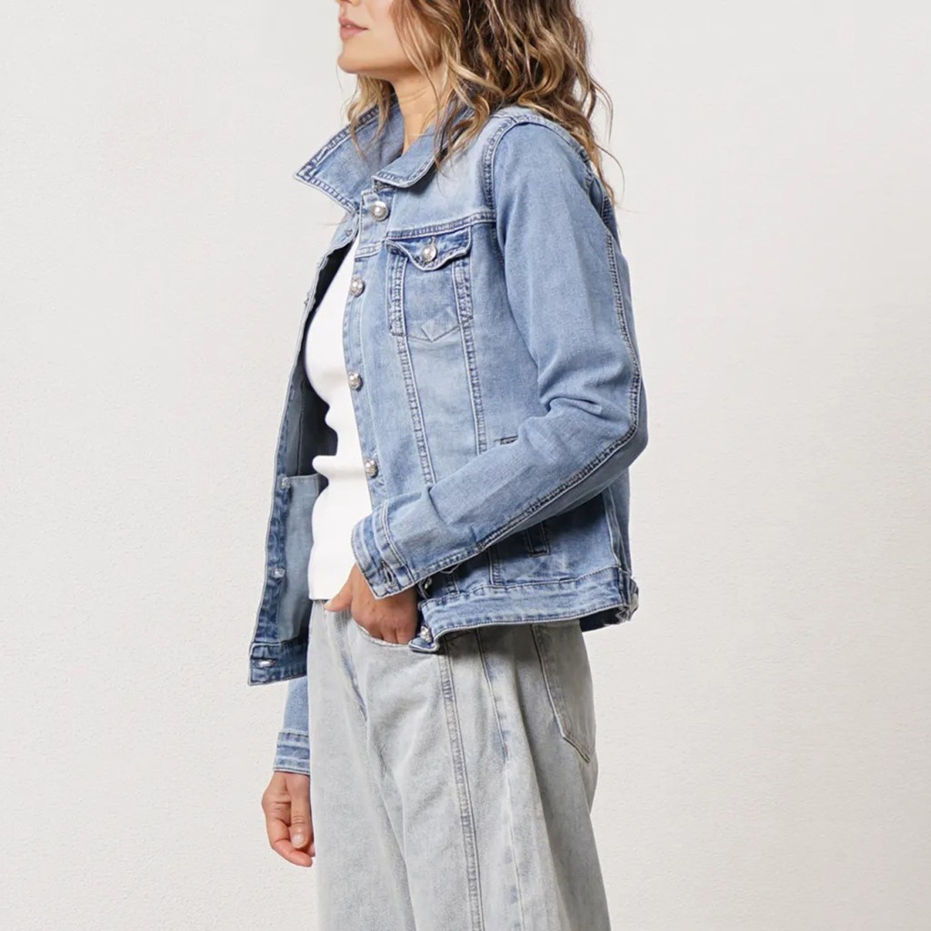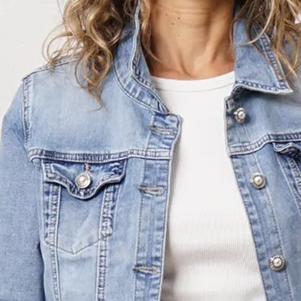 Cowboy jacket in denim, embroidered with crochet appliqué