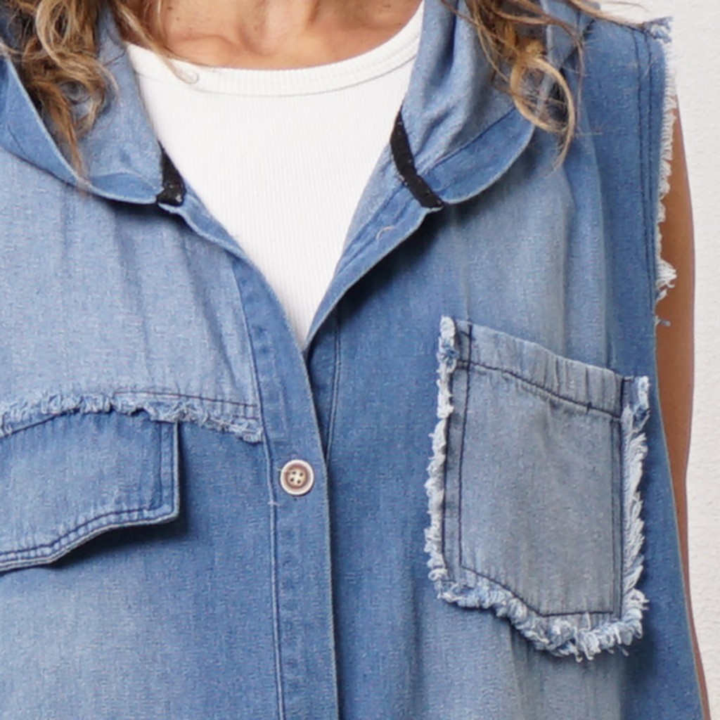 Cotton dress with buttons down the front and asymmetrical appliqués