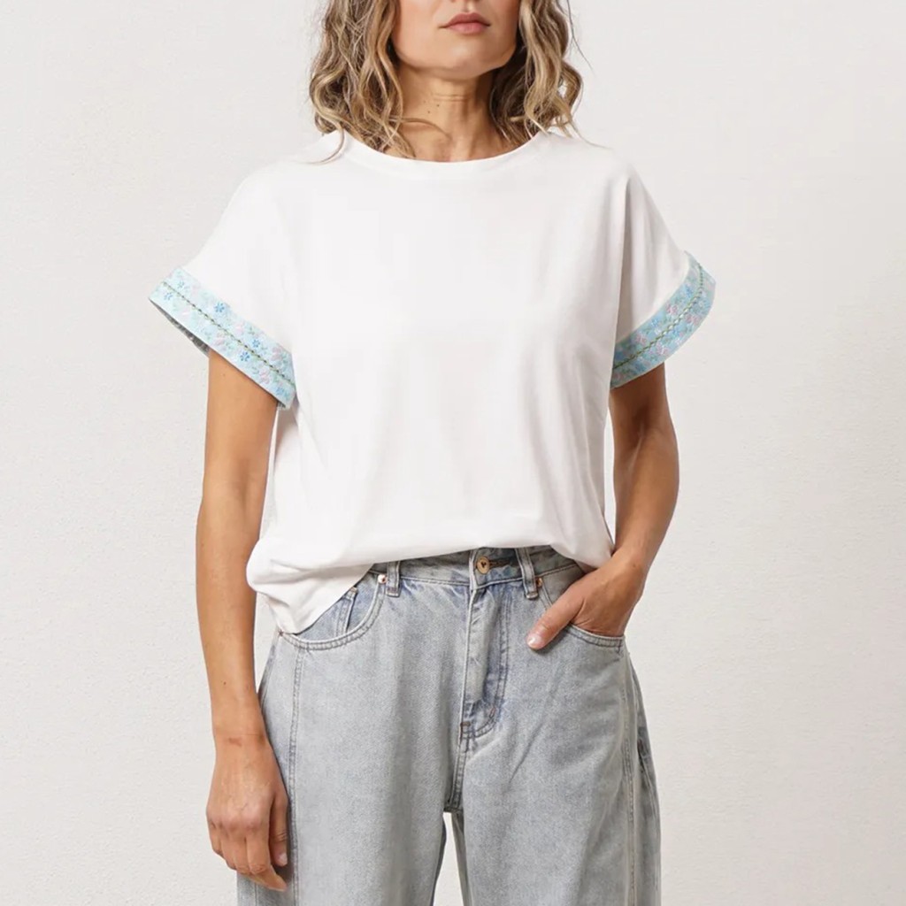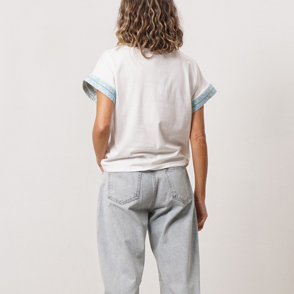 T-shirt with cotton and elastane fabric appliqués