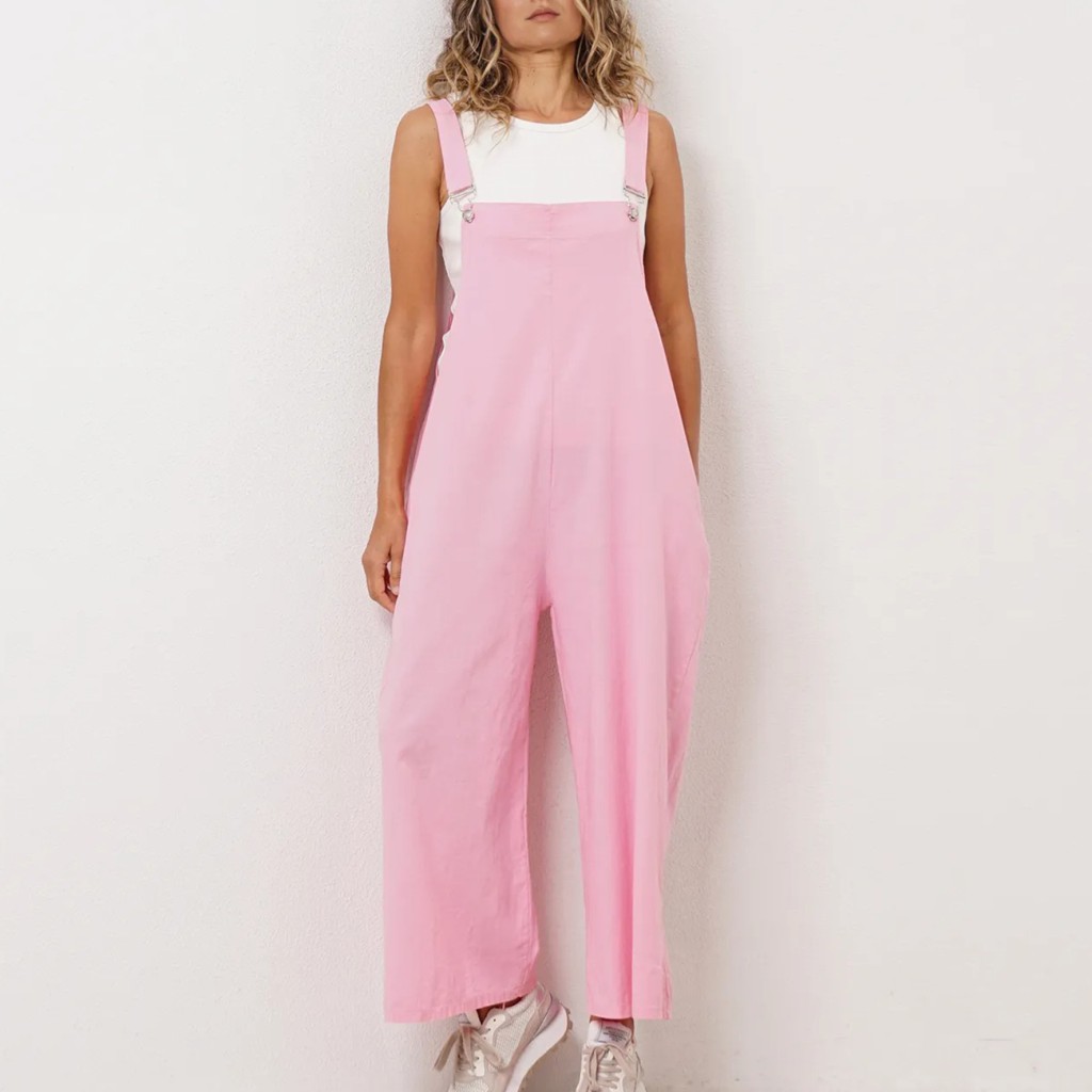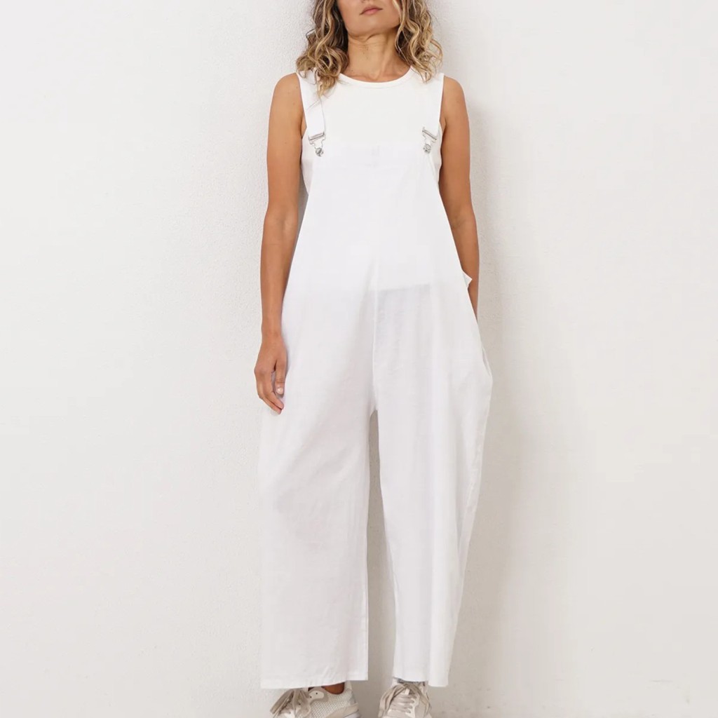 Oversized cotton mesh overalls