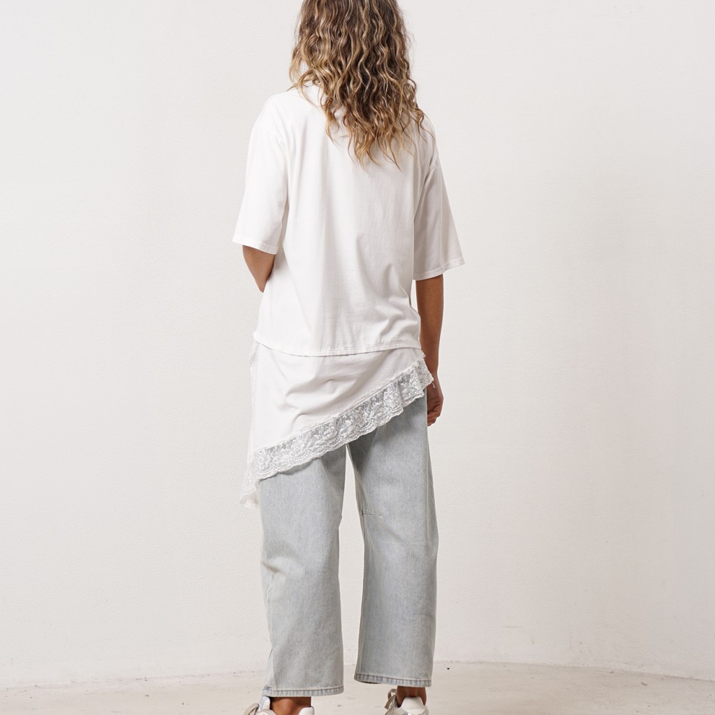Cotton tunic with lace appliqué