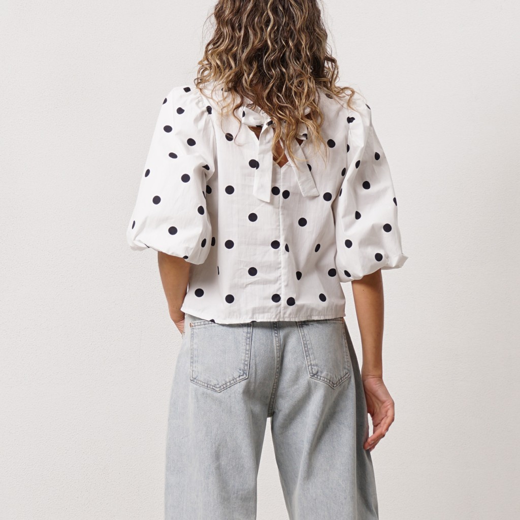 Poplin blouse with balloon sleeves