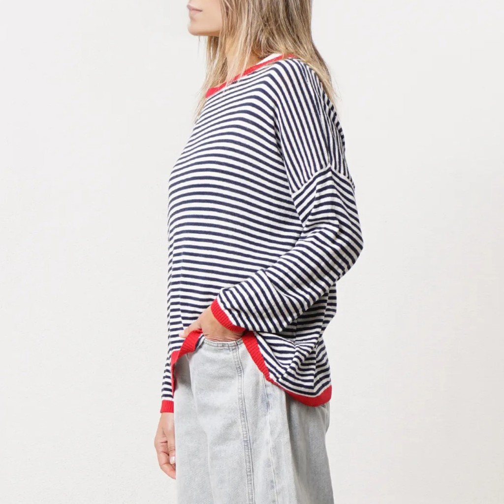 Striped knit shirt with cotton (jacquard)
