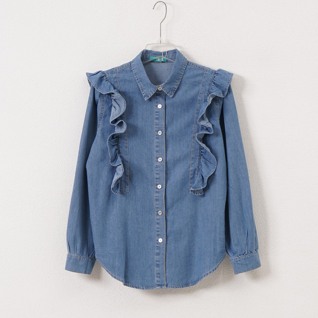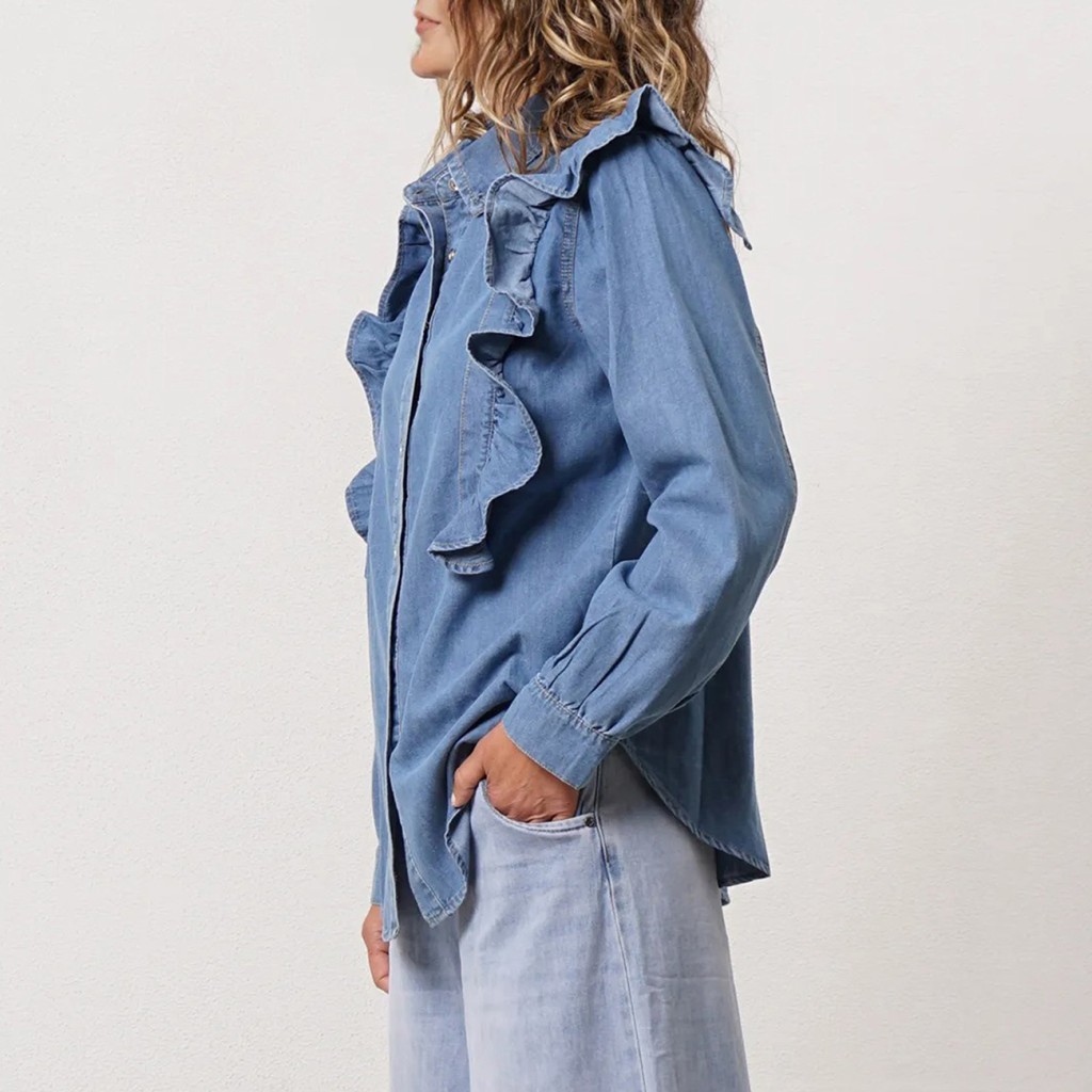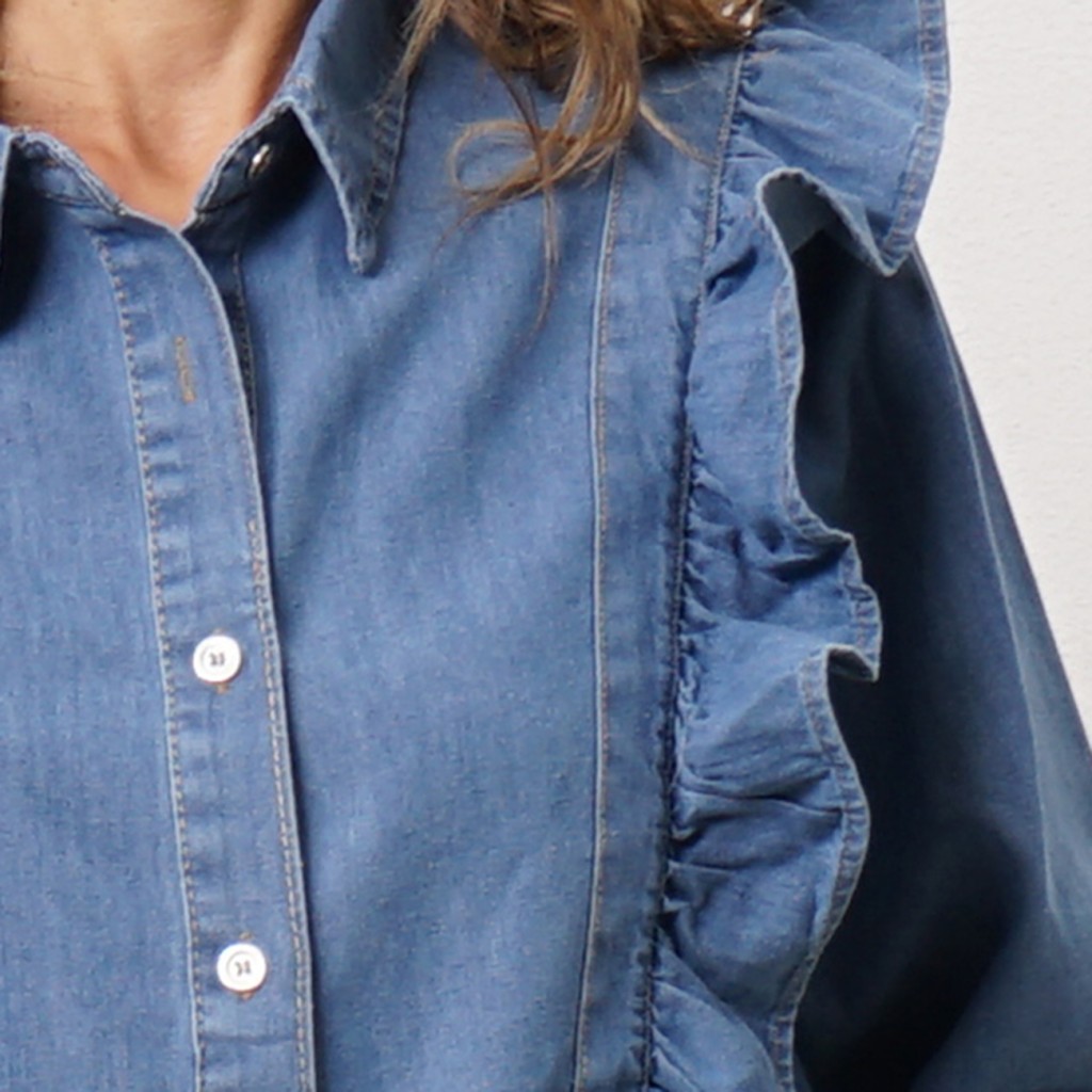 Denim blouse with ruffles Denim blouse with ruffles Denim blouse with ruffles Denim blouse with ruffles Denim blouse with ruffles