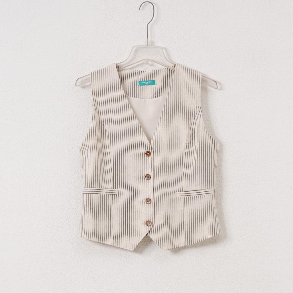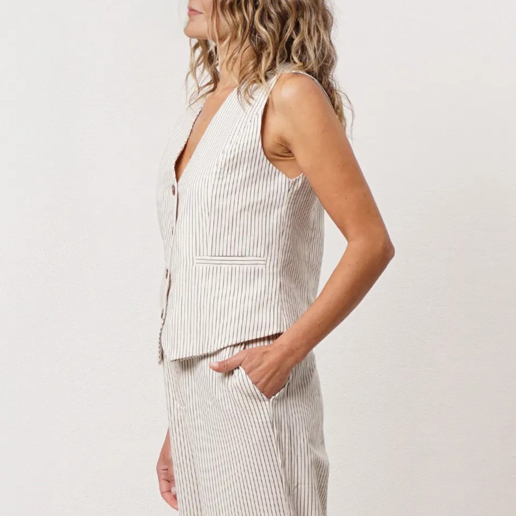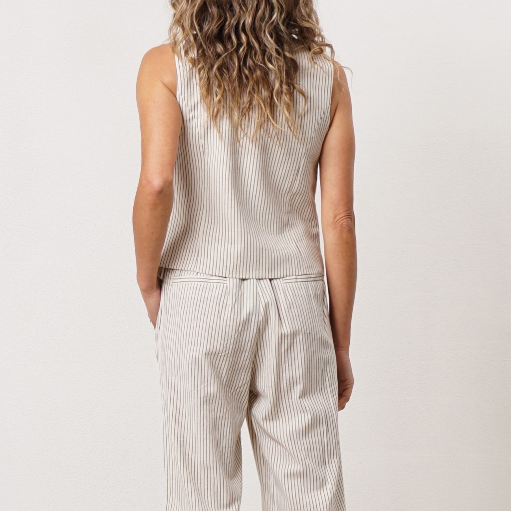 Linen/viscose striped vest with elastane