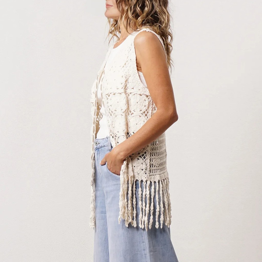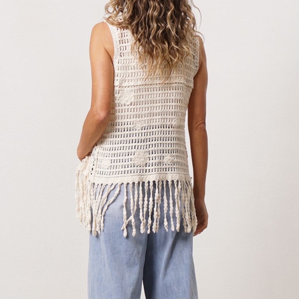 crocheted vest with fringe
