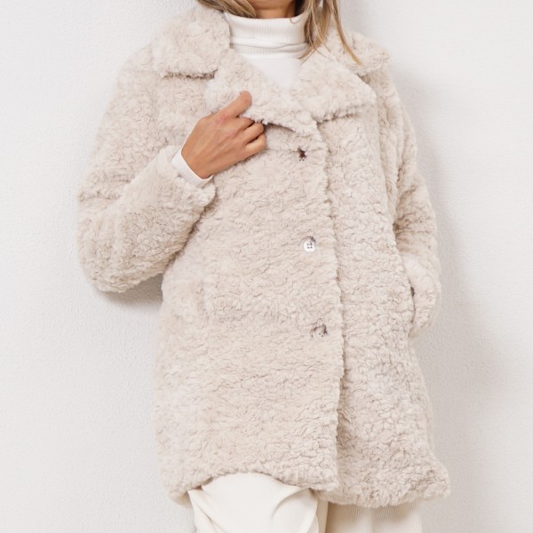 casaco de pelo (borrego) c/ aplicação (debruado em ecopele)