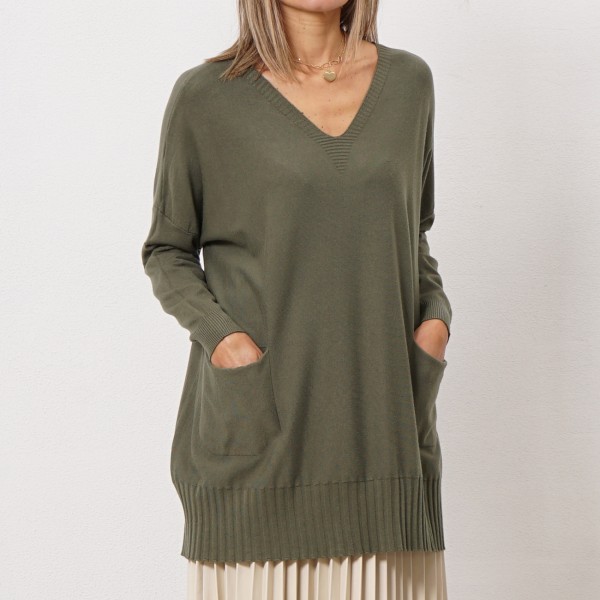 camisola em tricôt c/ mangas em ganga