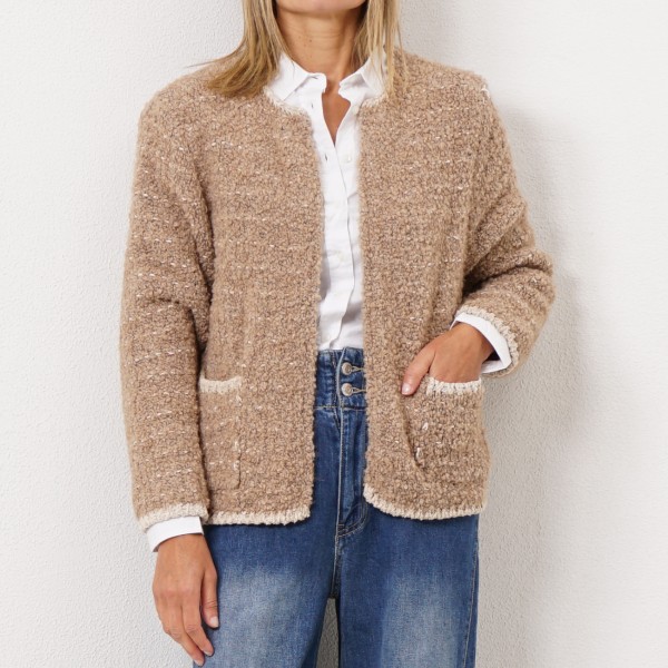 casaco de pelo (borrego) c/ aplicação (debruado em ecopele)