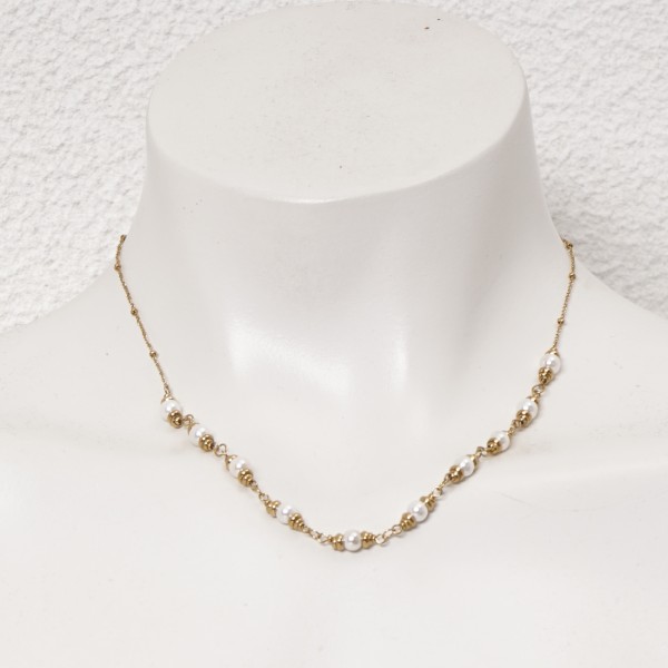 colar em aço inoxidável c/ pérolas (aço cirúrgico) s/ níquel