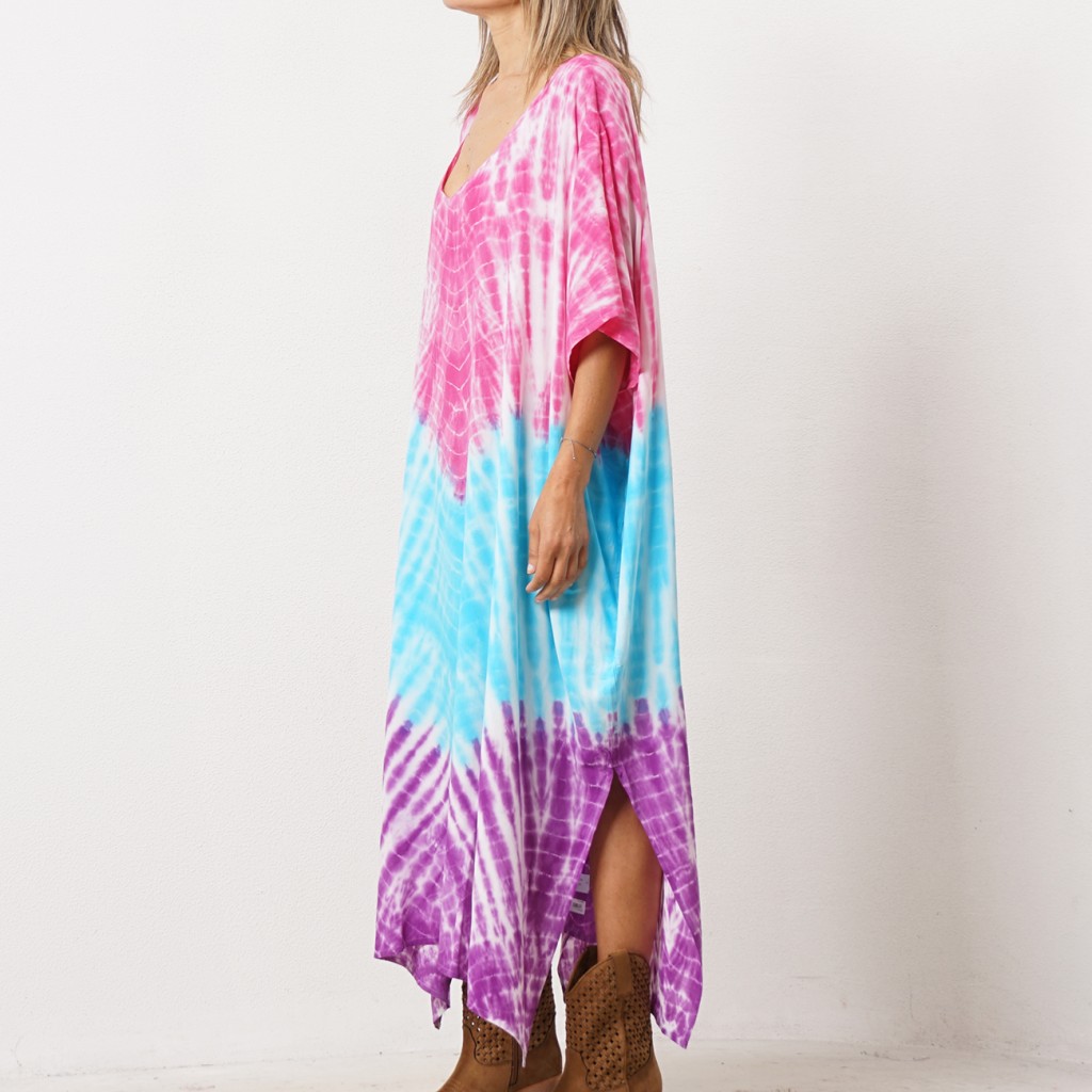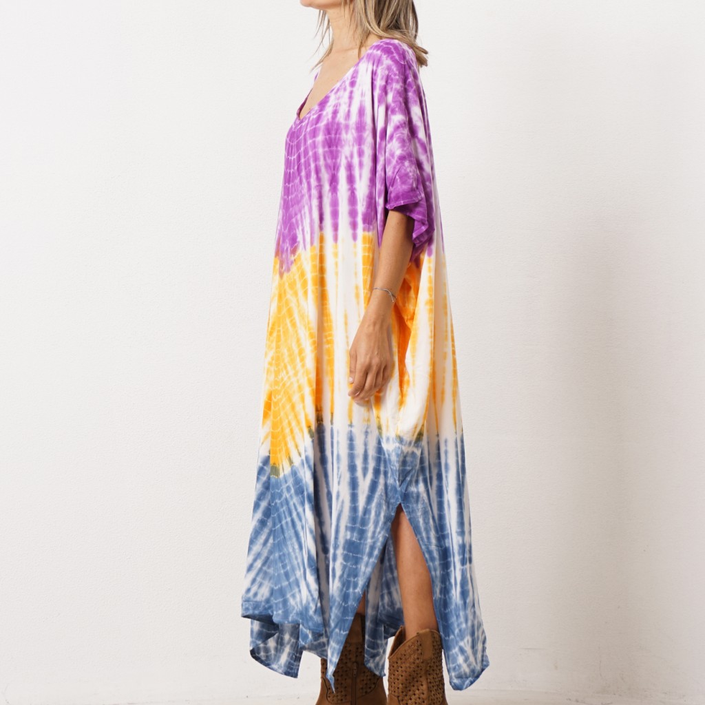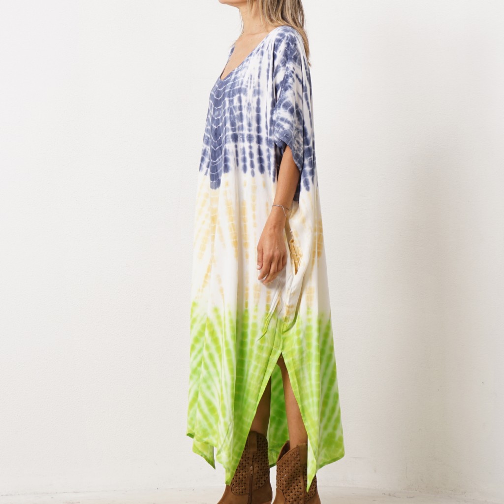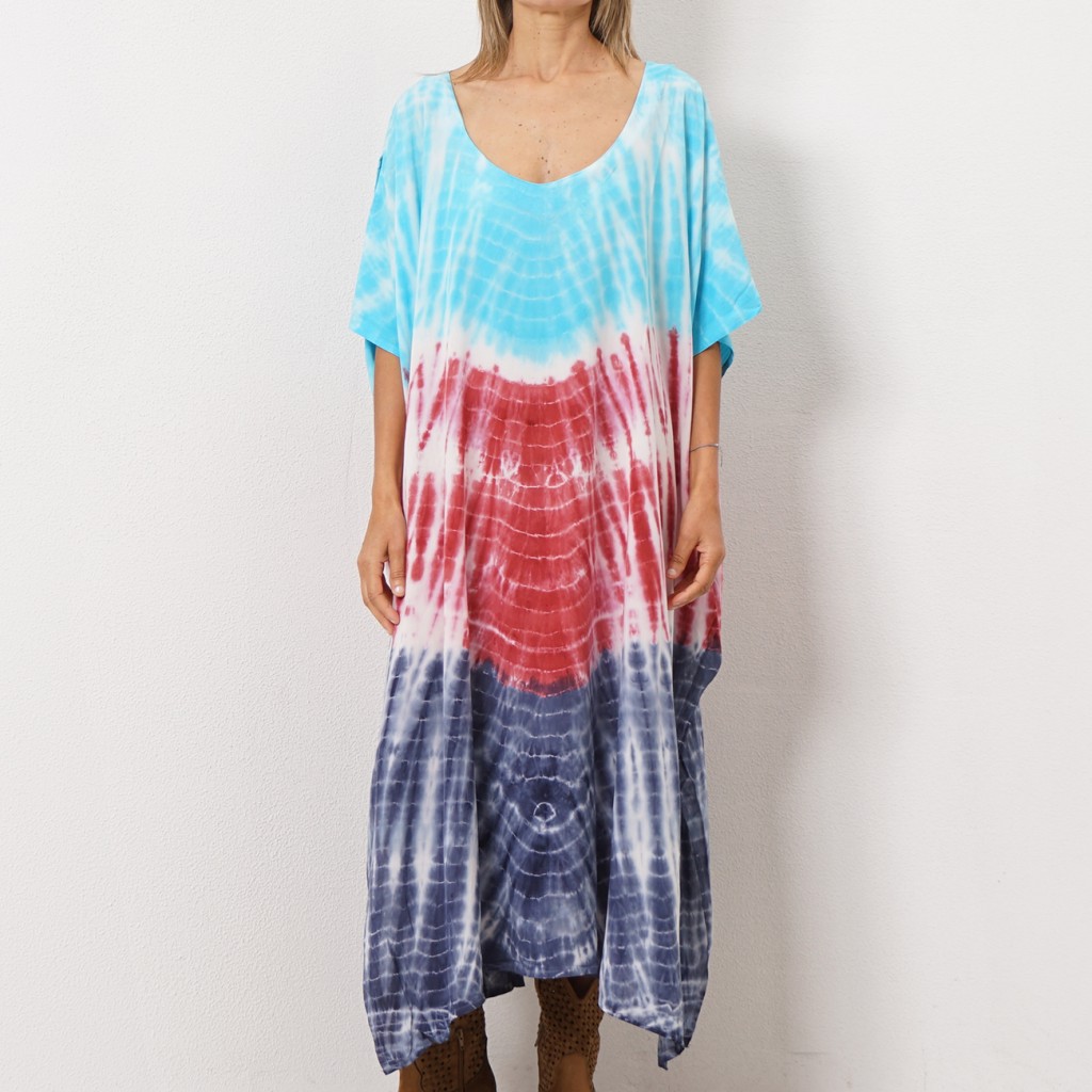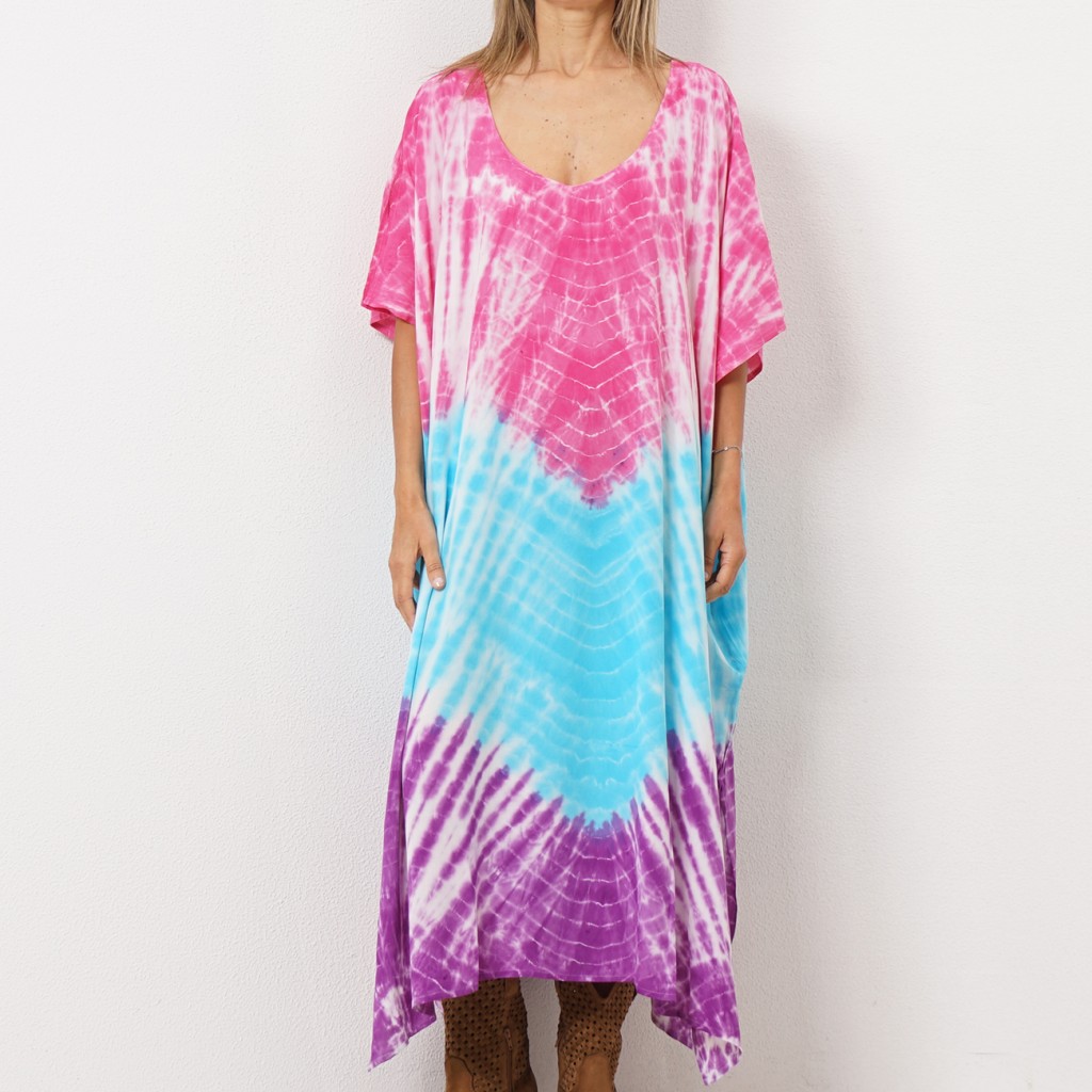 vestido tie dye em rayon ( fibra natural-textura suave)