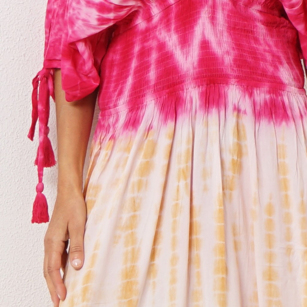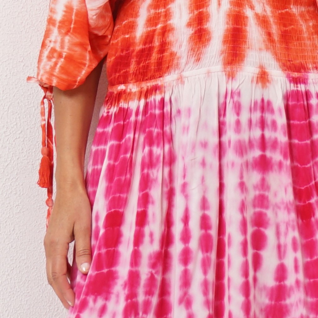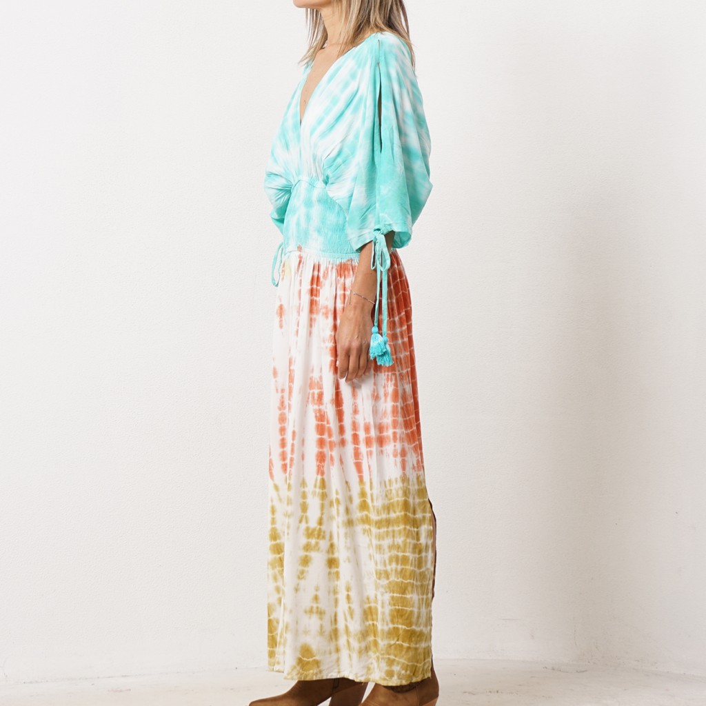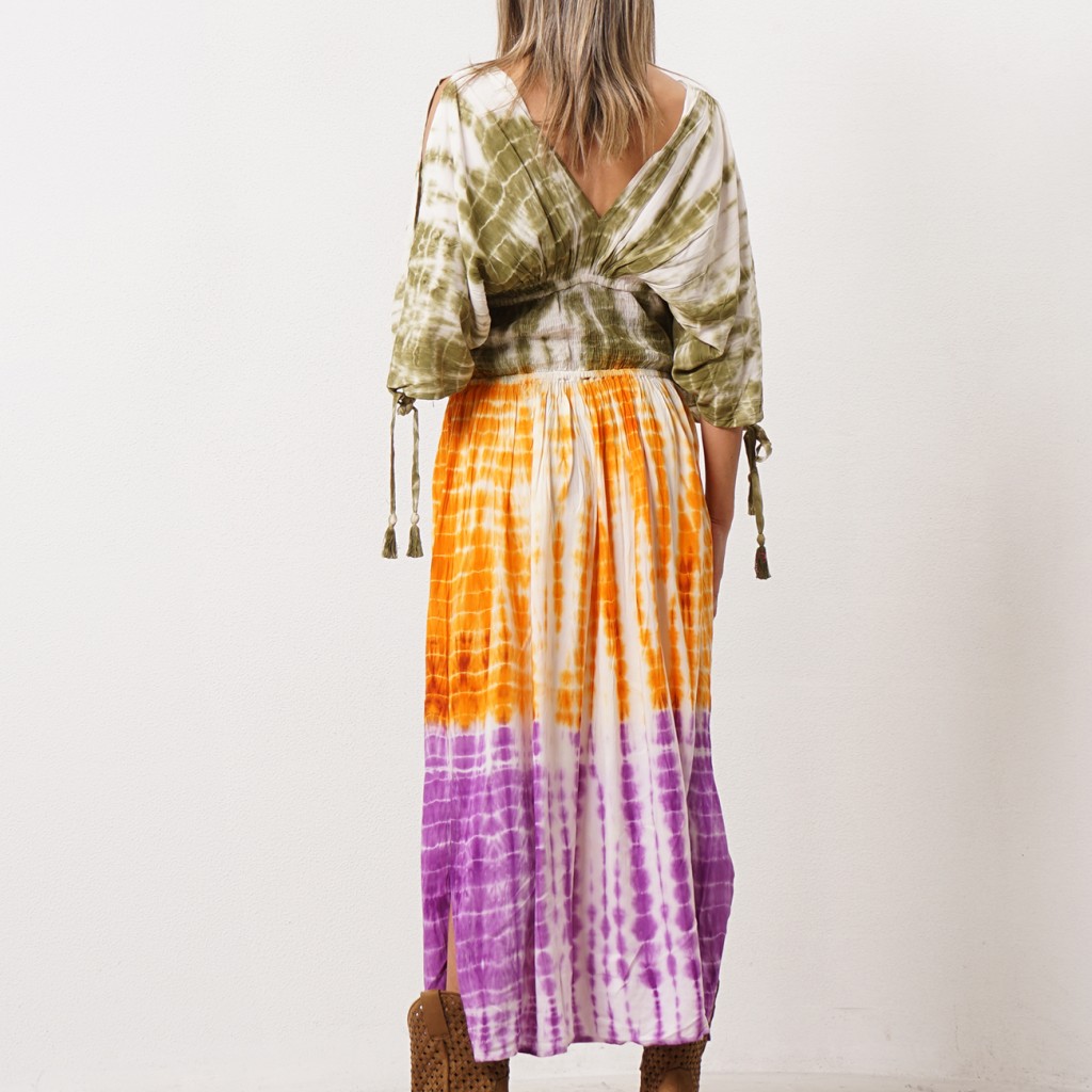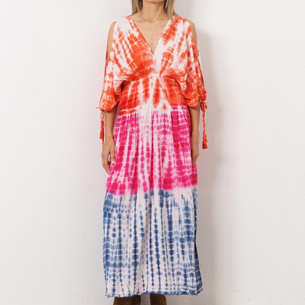 vestido tie dye em rayon ( fibra natural-textura suave)