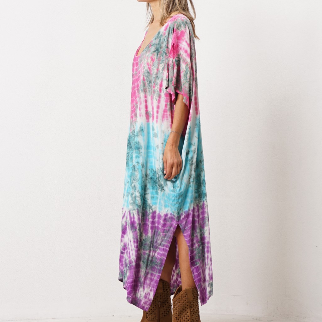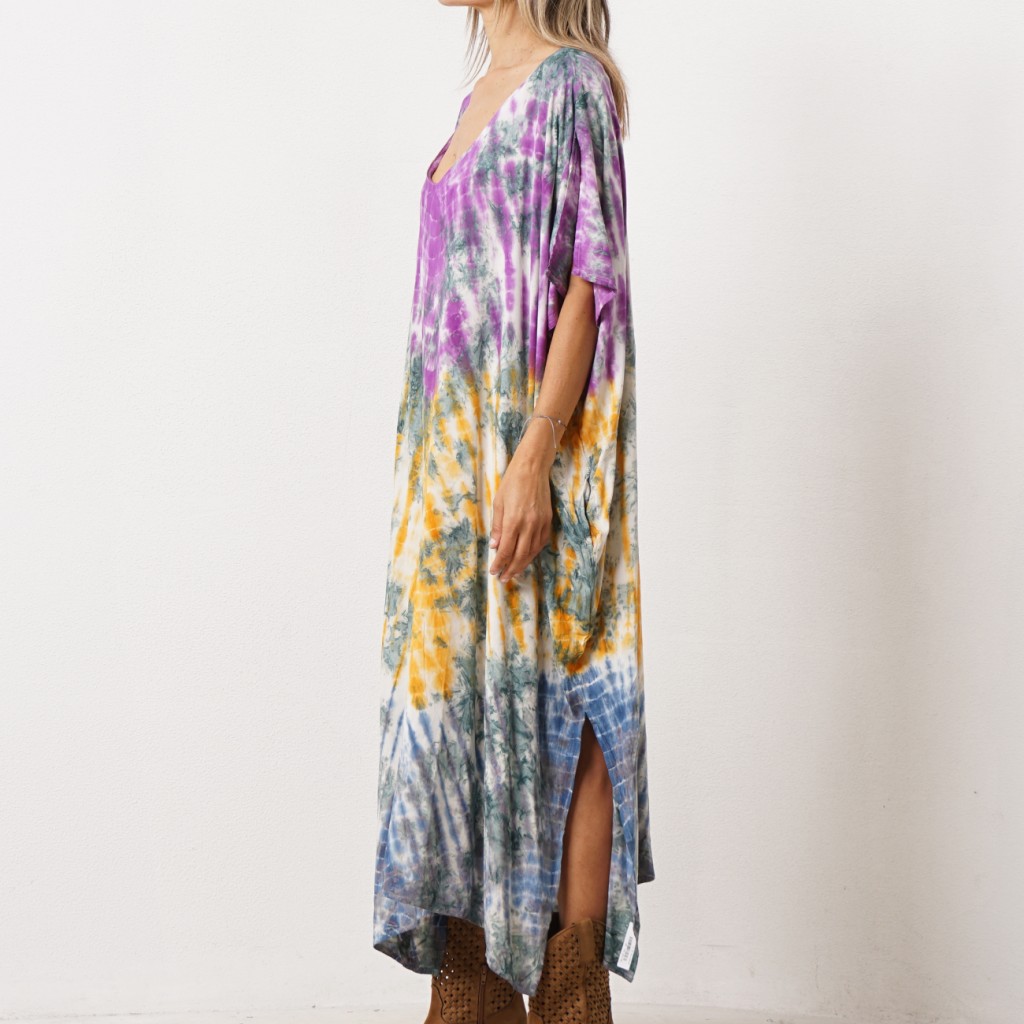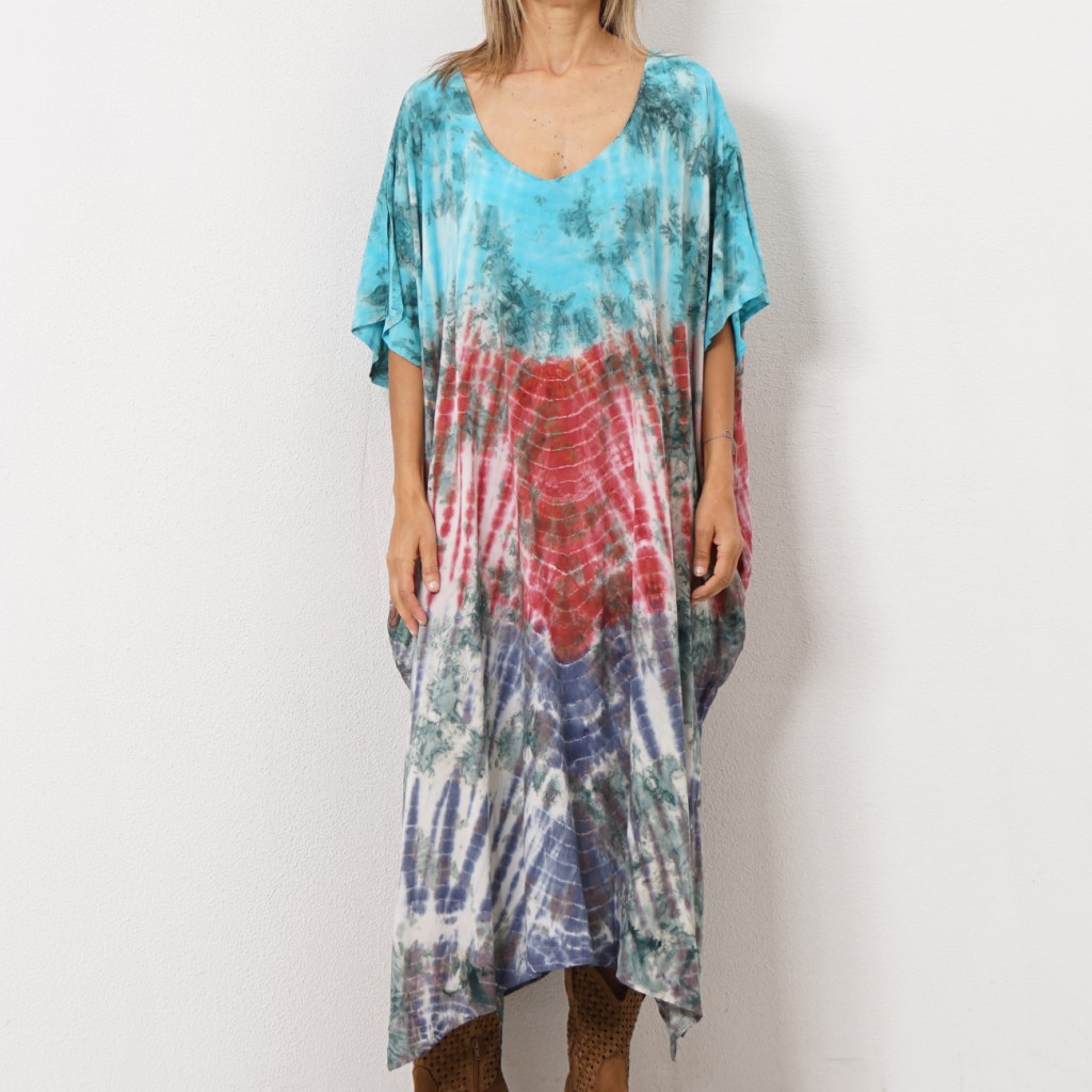 vestido tie dye em rayon ( fibra natural-textura suave)