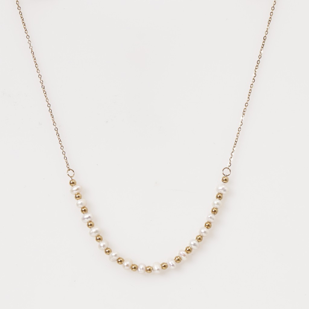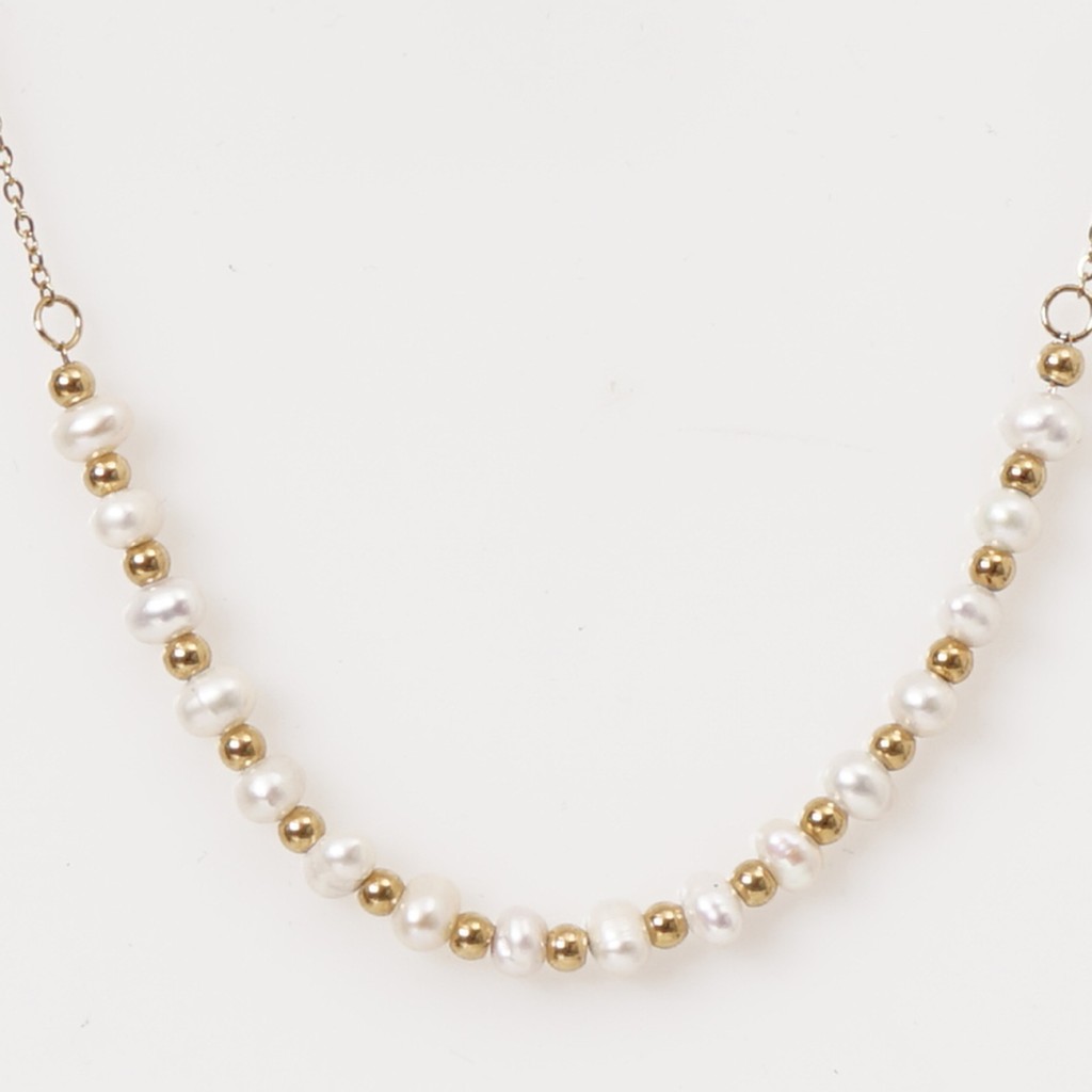 colar em aço inoxidável c/ pérolas (aço cirúrgico) s/ níquel
