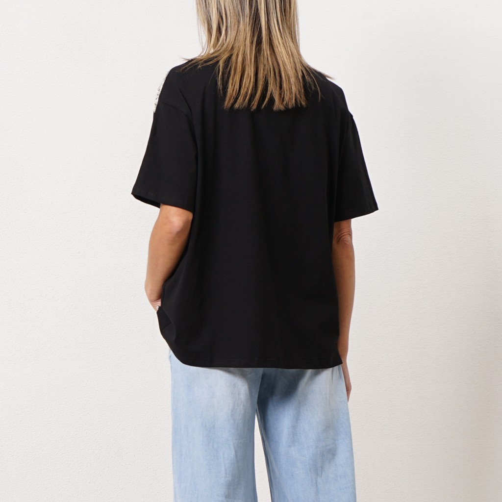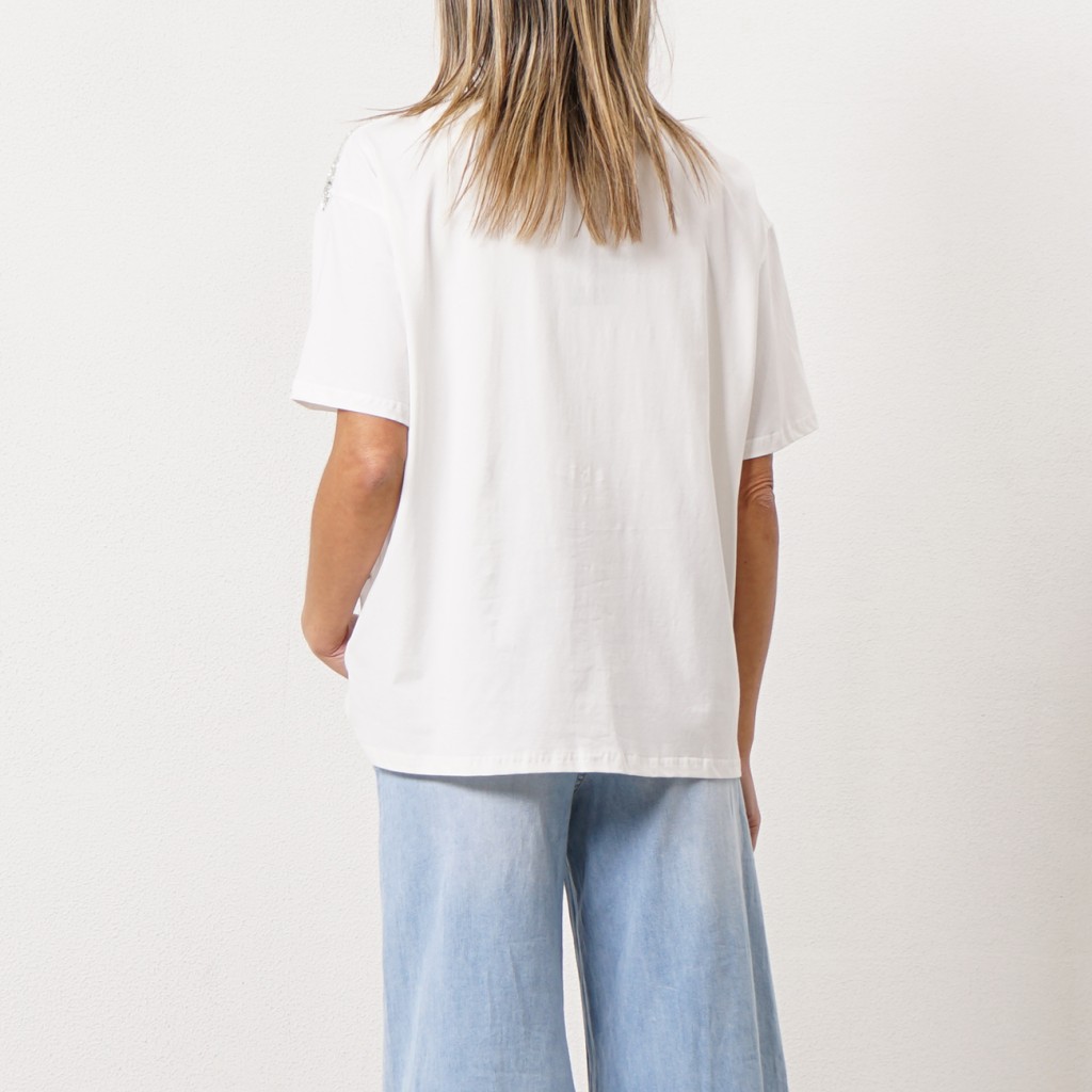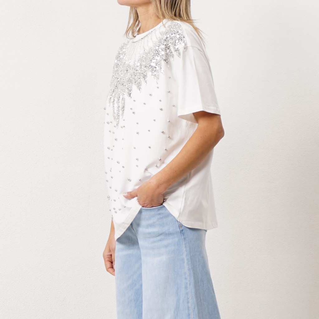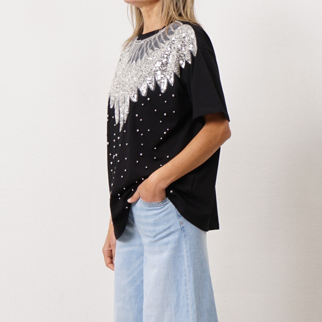 tshirt c/ aplicação de missangas, lantejoulas e bolas (premium)