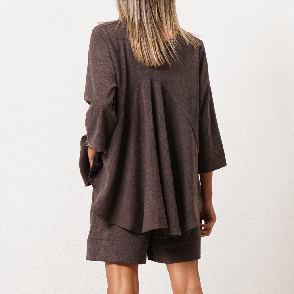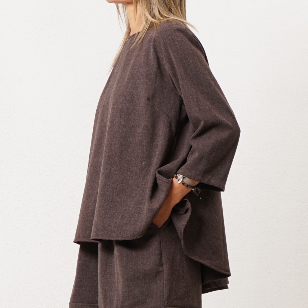 Composição: 86% poliester, 10% viscose, 4% elastano