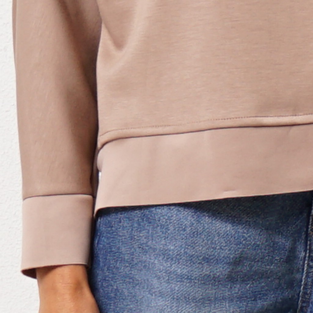 Composição: 55% poliester, 39% viscose, 6% elastano