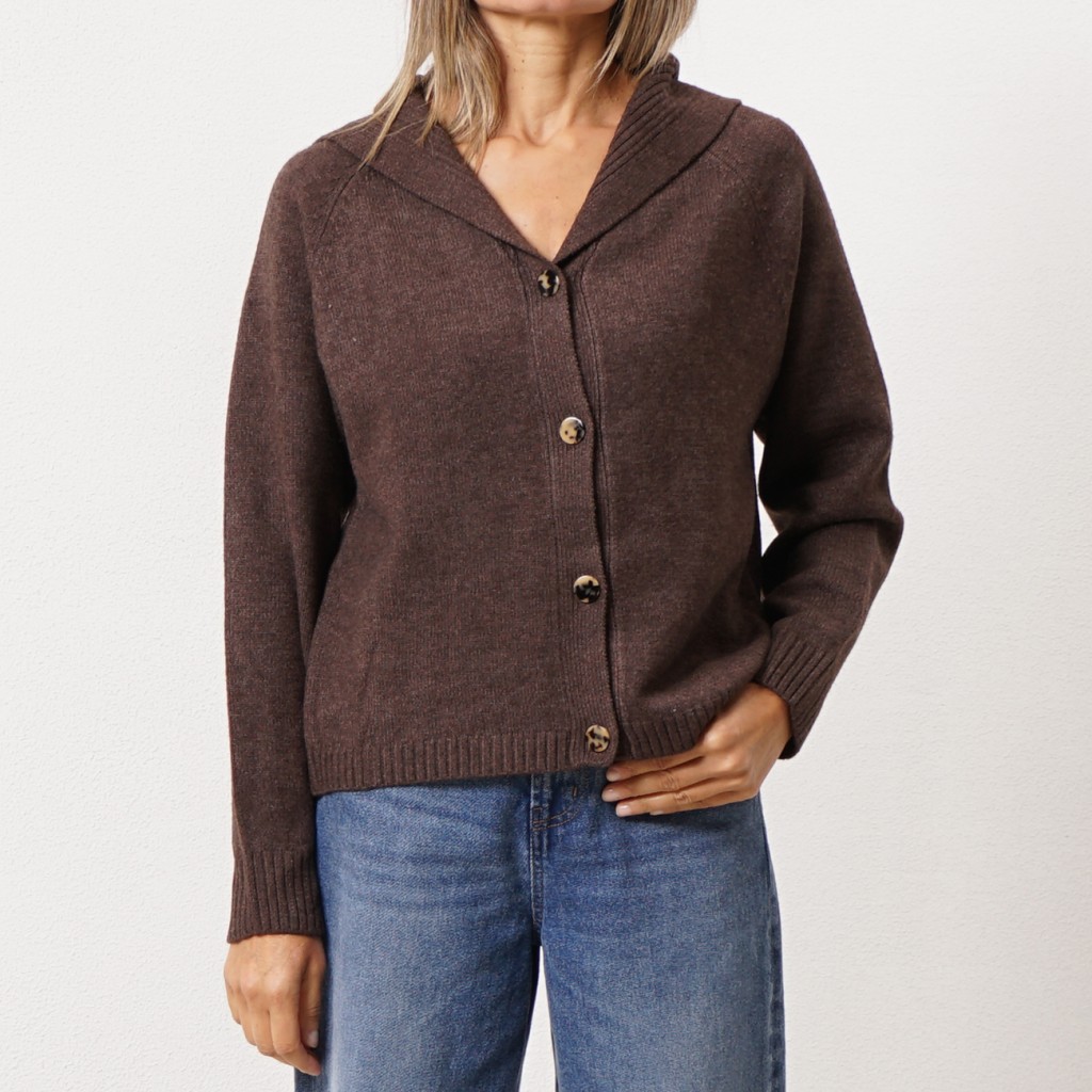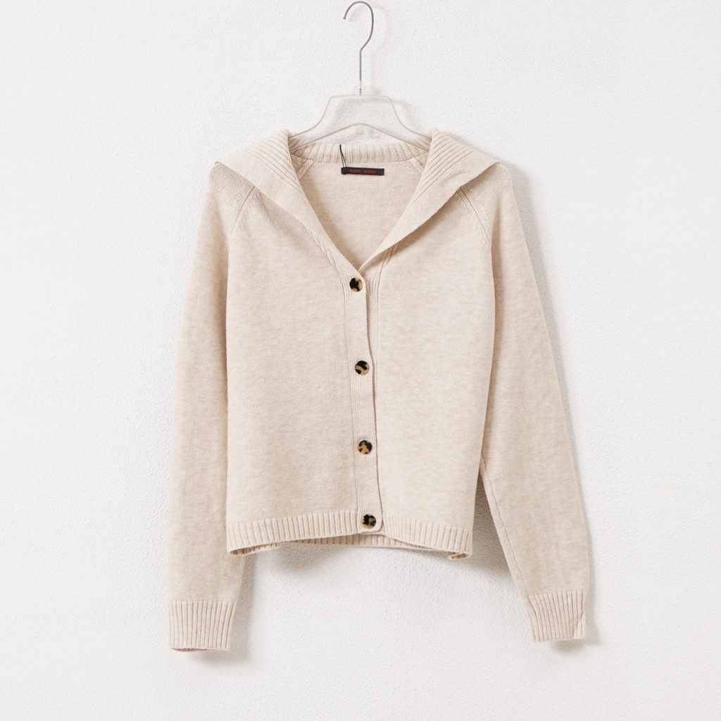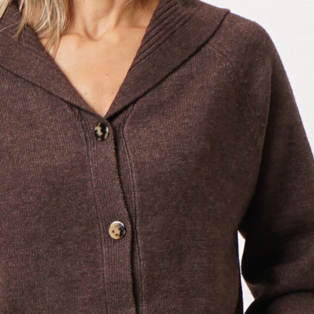 casaco em tricôt c/ gola à barco