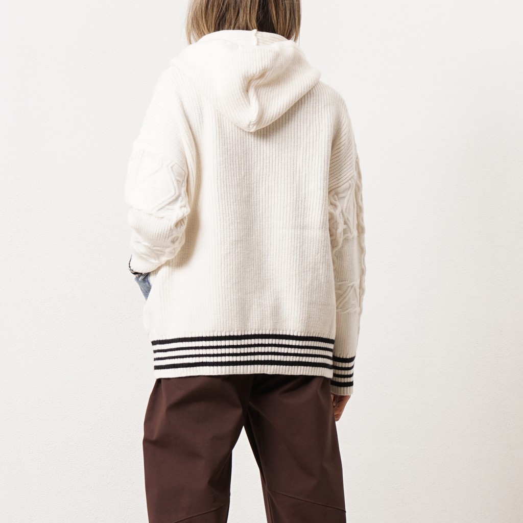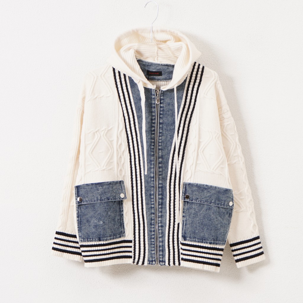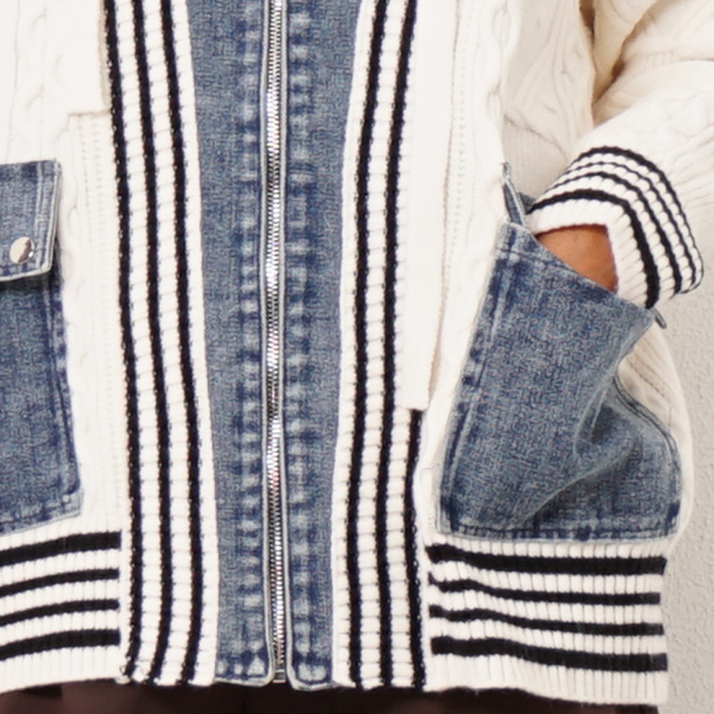 casaco em tricôt c/ aplicações em ganga