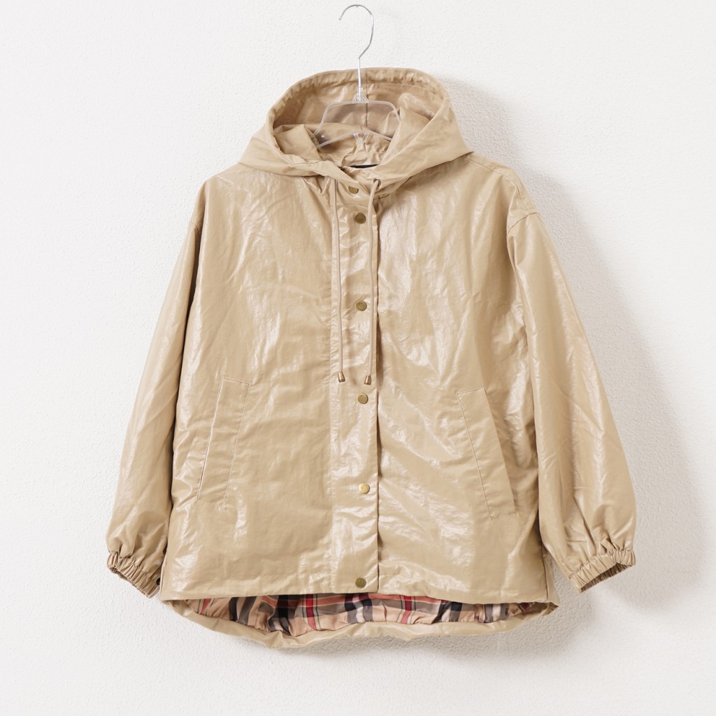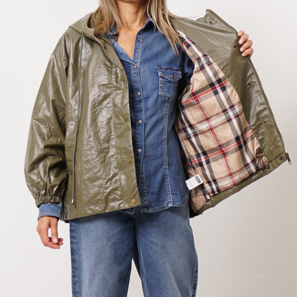 parka brilhante impermeável c/ forro de xadrez (premium)