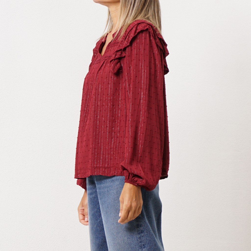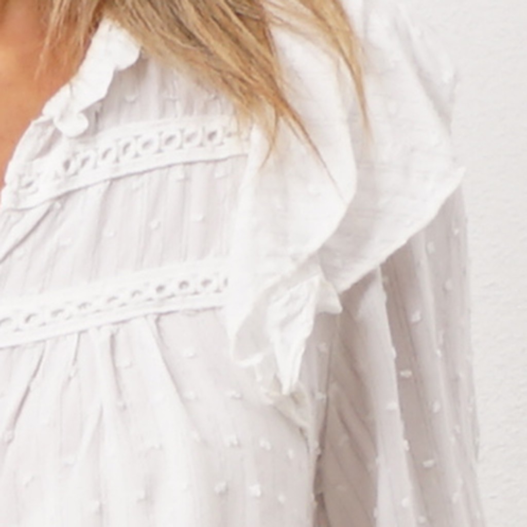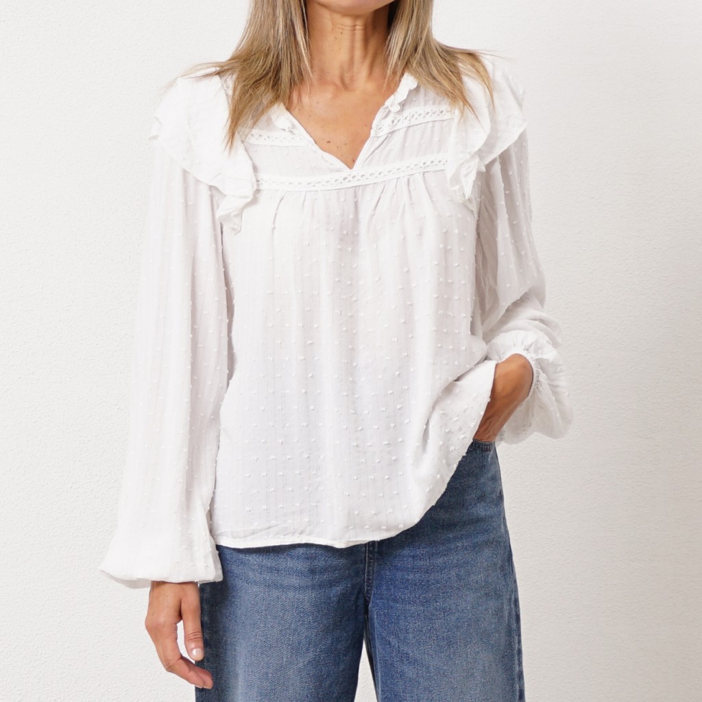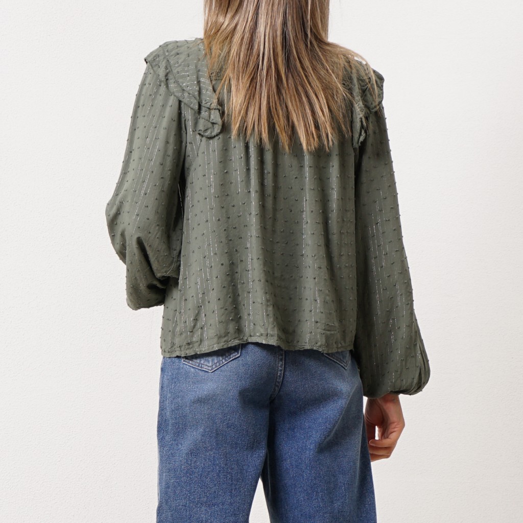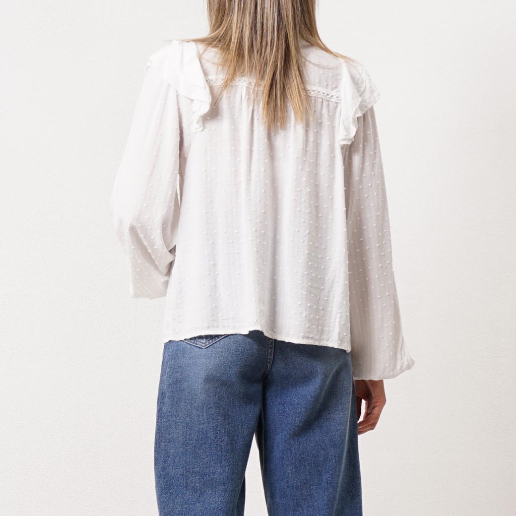 blusa de folhos em chiffon bordada