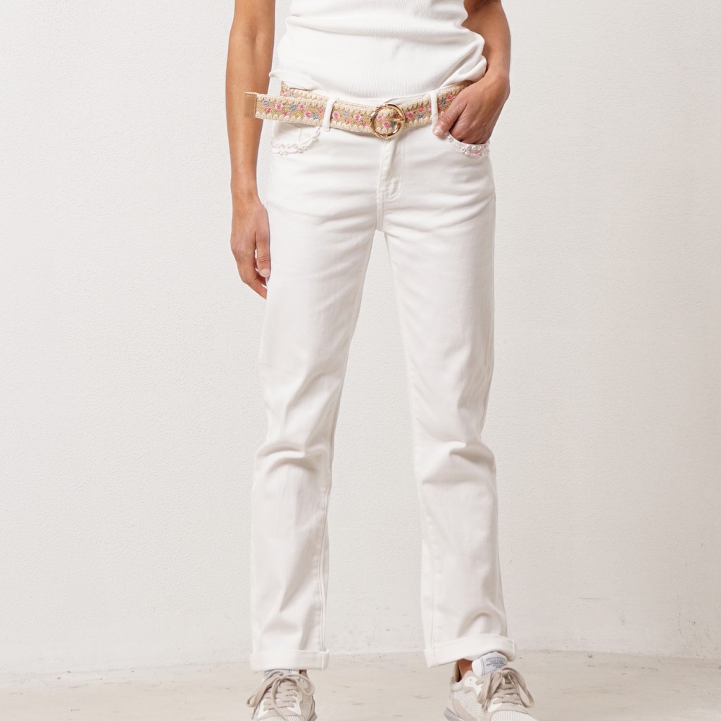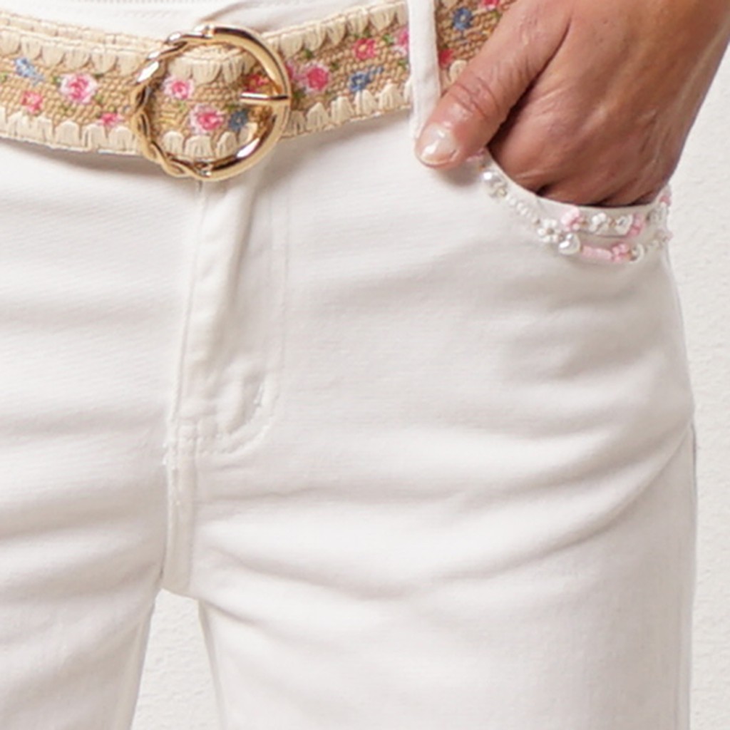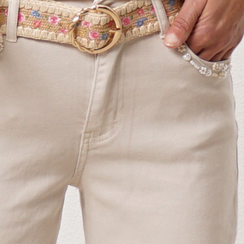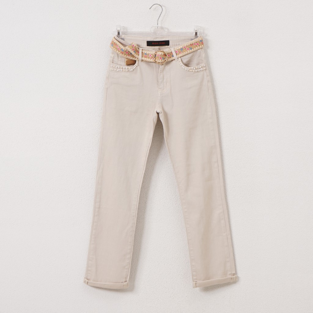 calça de ganga c/ cinto e aplicações