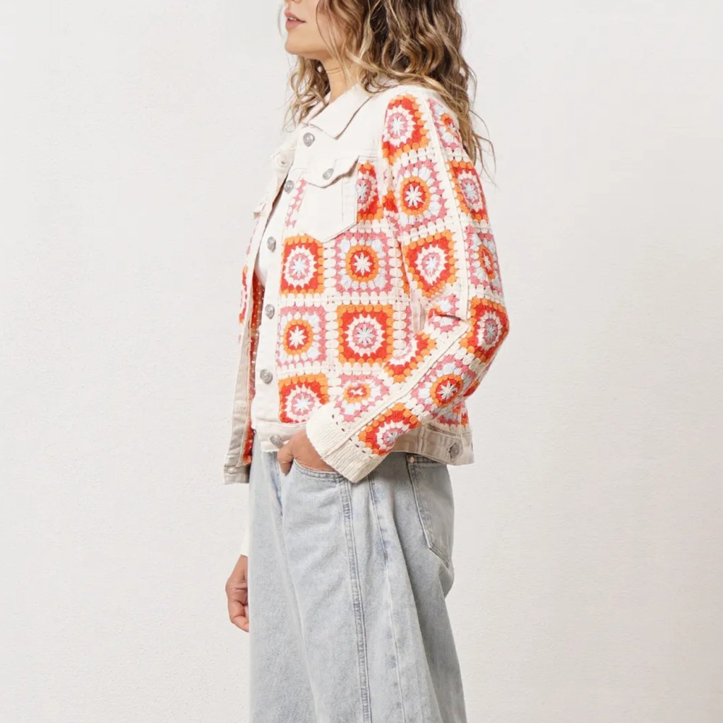 blusão vaqueiro c/ aplicação em crochet