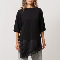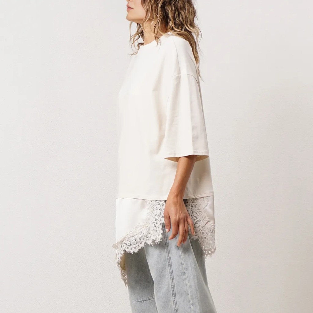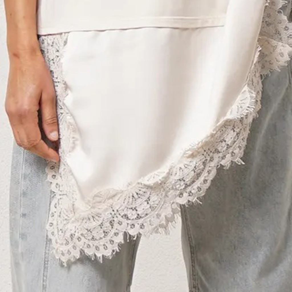 túnica vintage c/ aplicação em cetim e renda (premium)