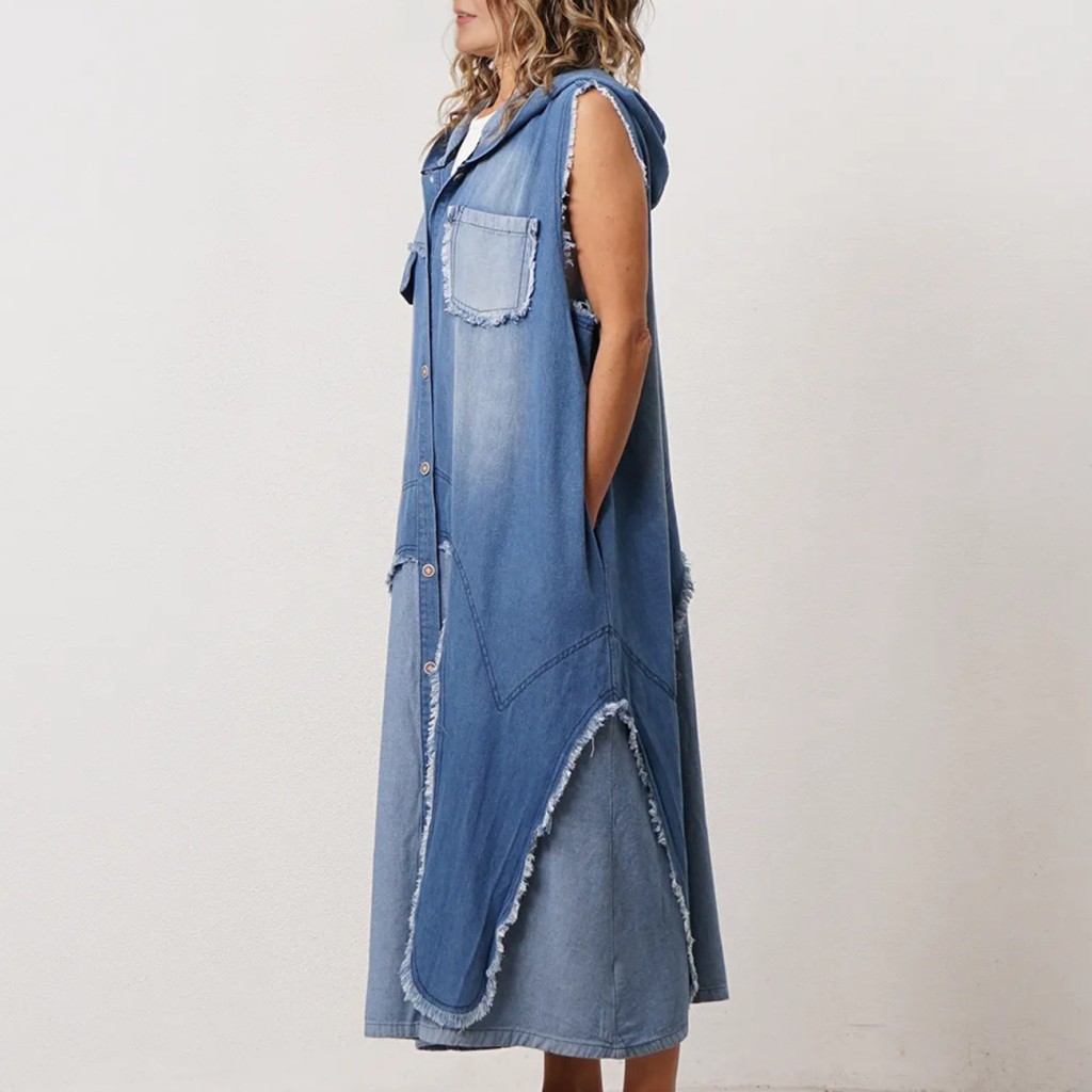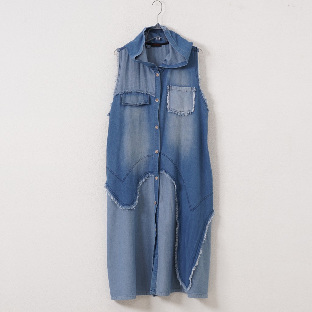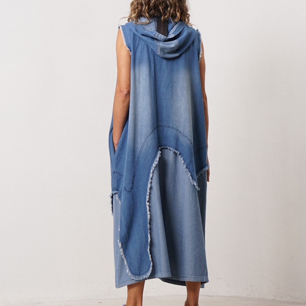 vestido em algodão c/ botóes na frente e aplicações assimétricas