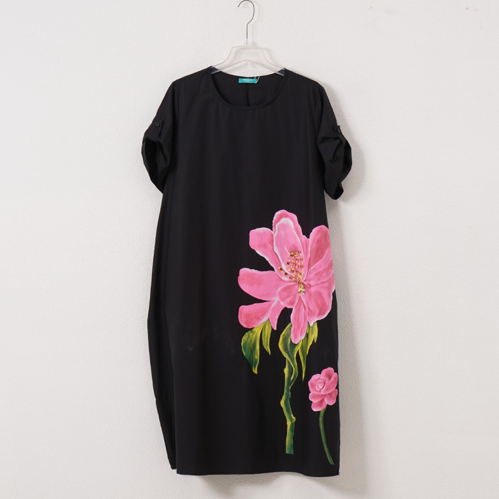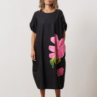 vestido em algodão c/ estampa floral e aplicações brilhantes