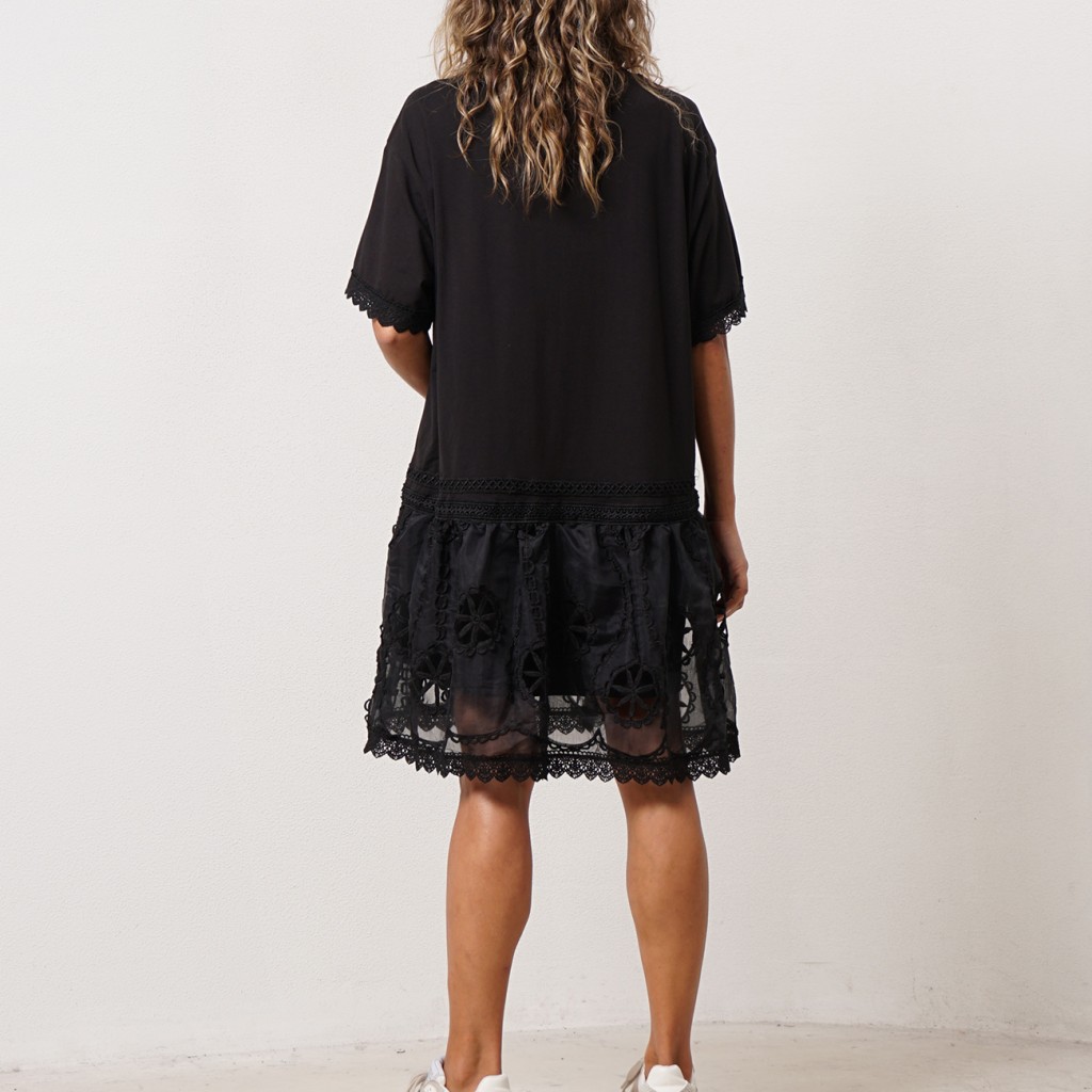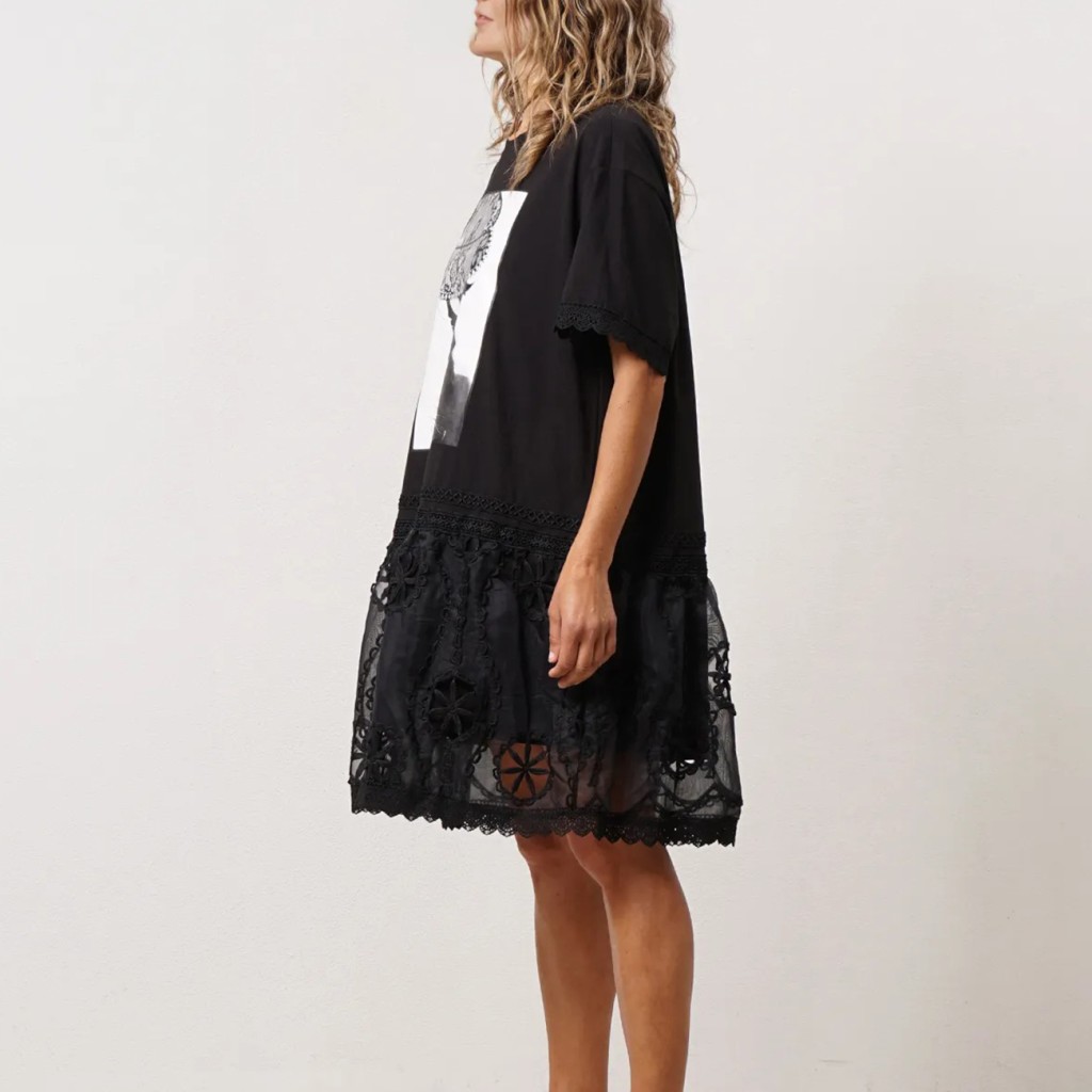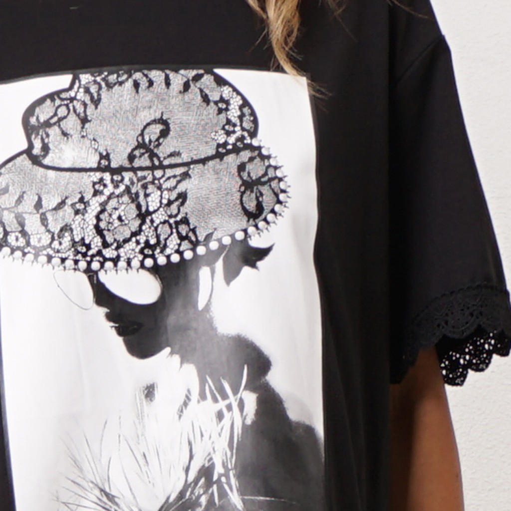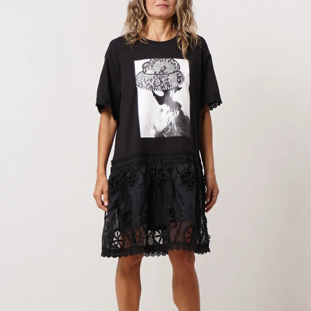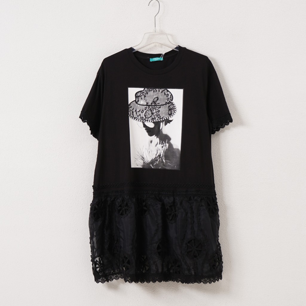 vestido c/ mistura de tecidos estampado