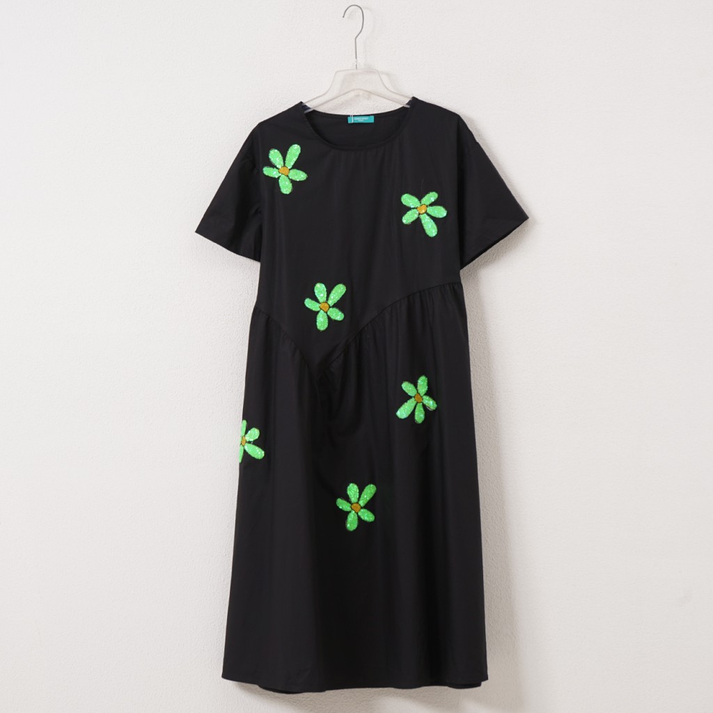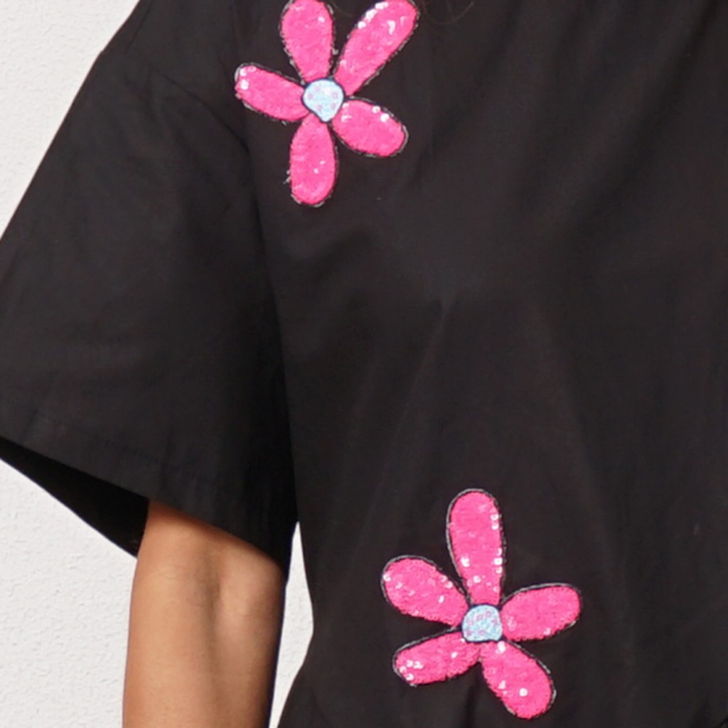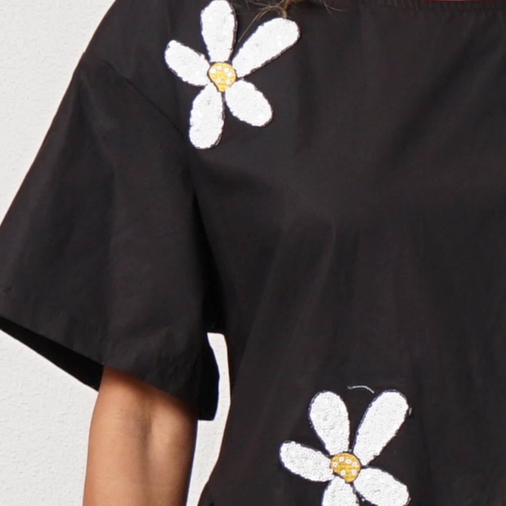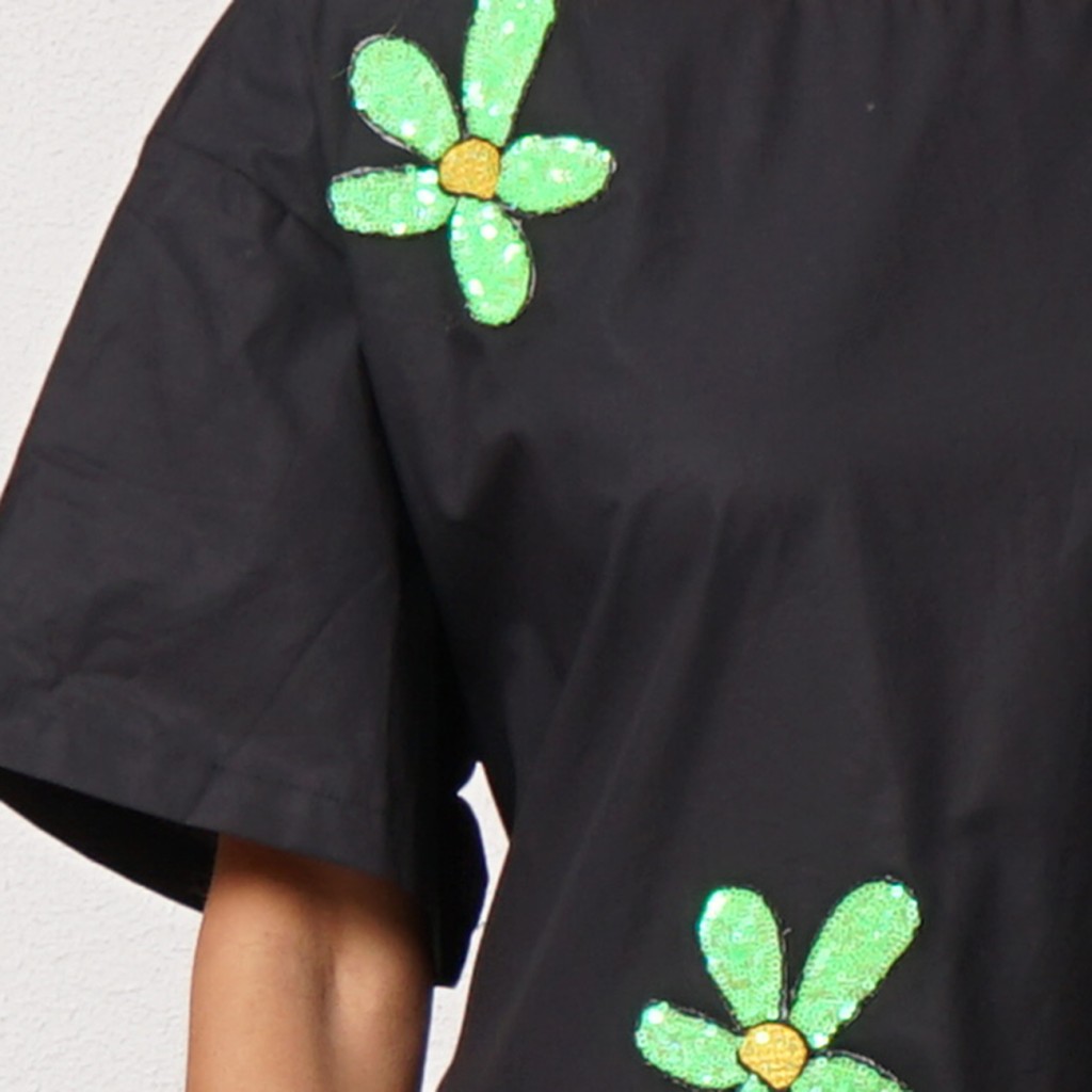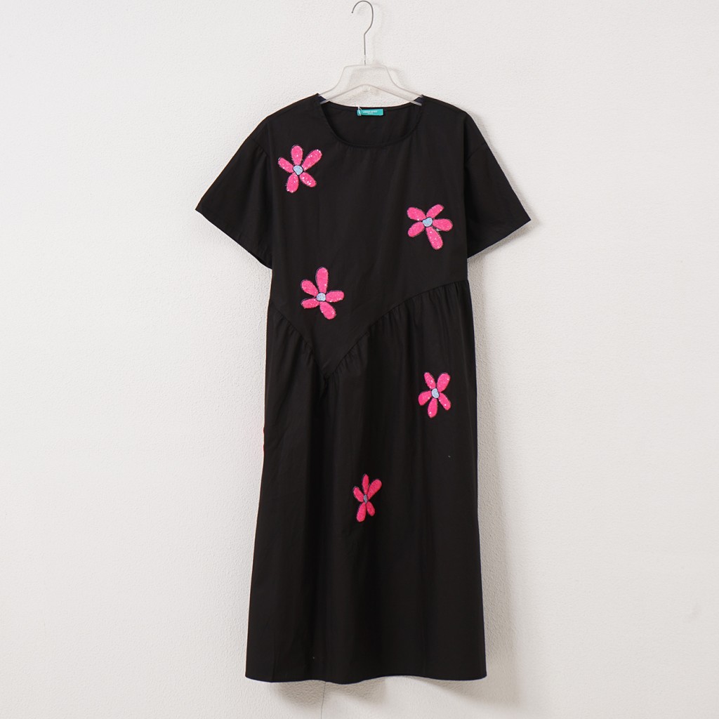 vestido de popelina c/ aplicação de lantejoulas