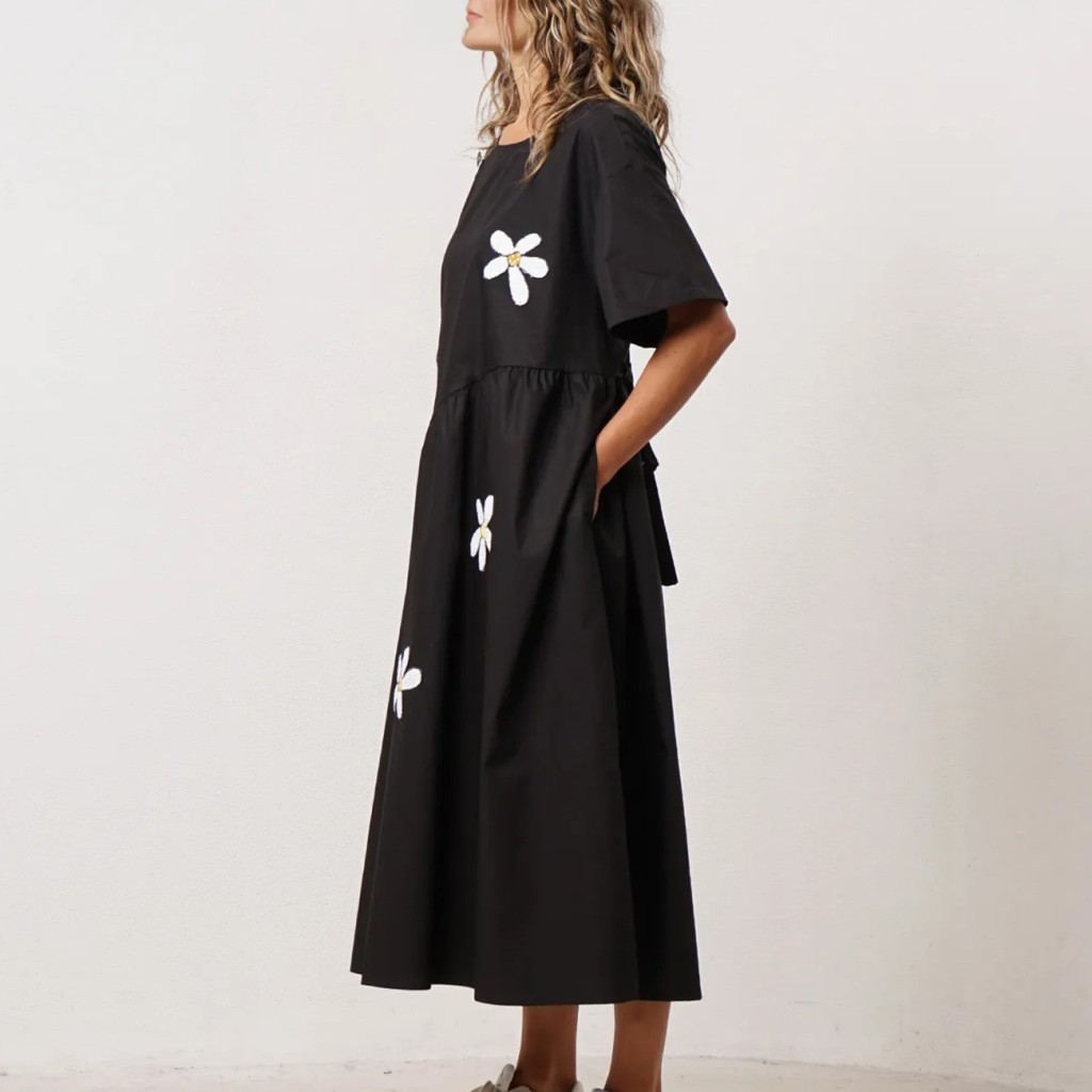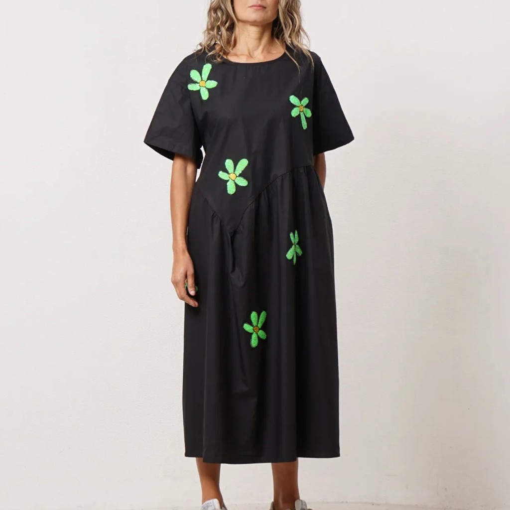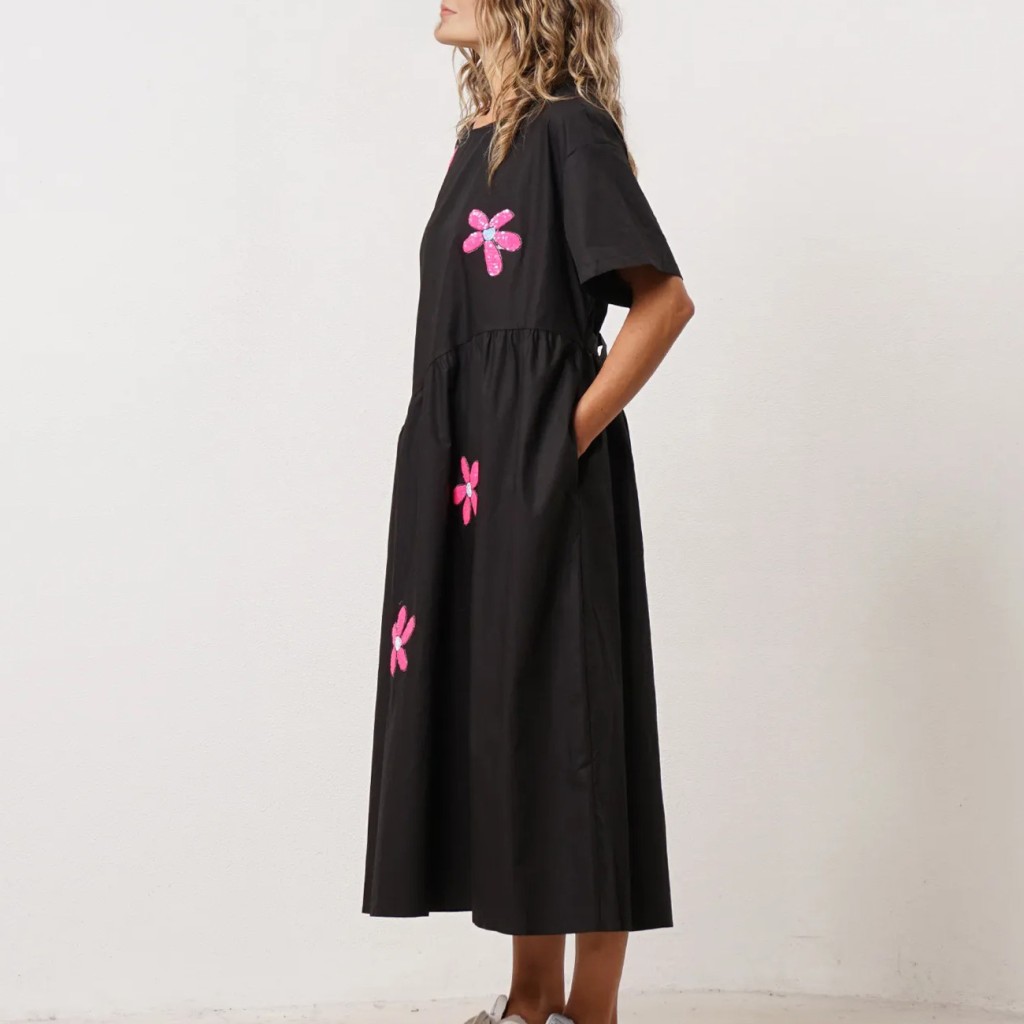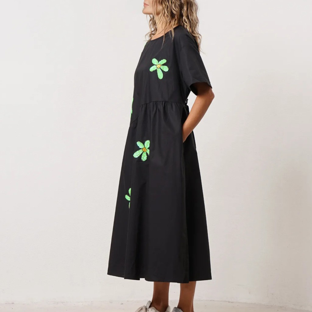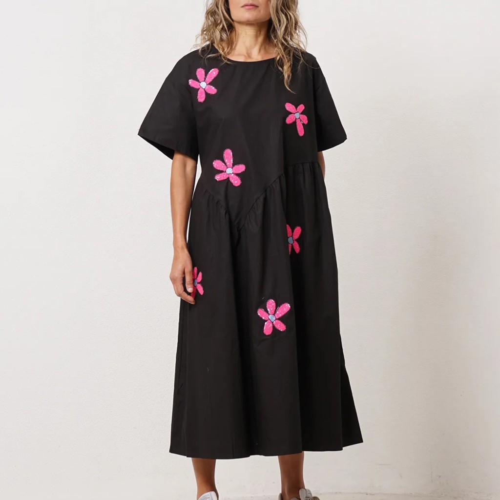 vestido de popelina c/ aplicação de lantejoulas