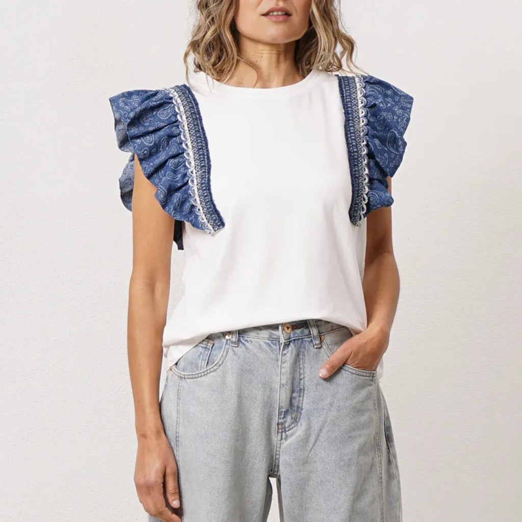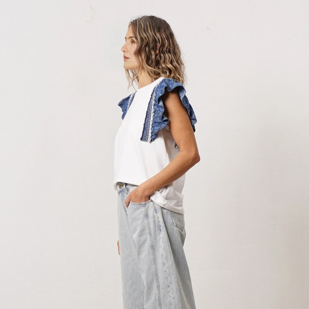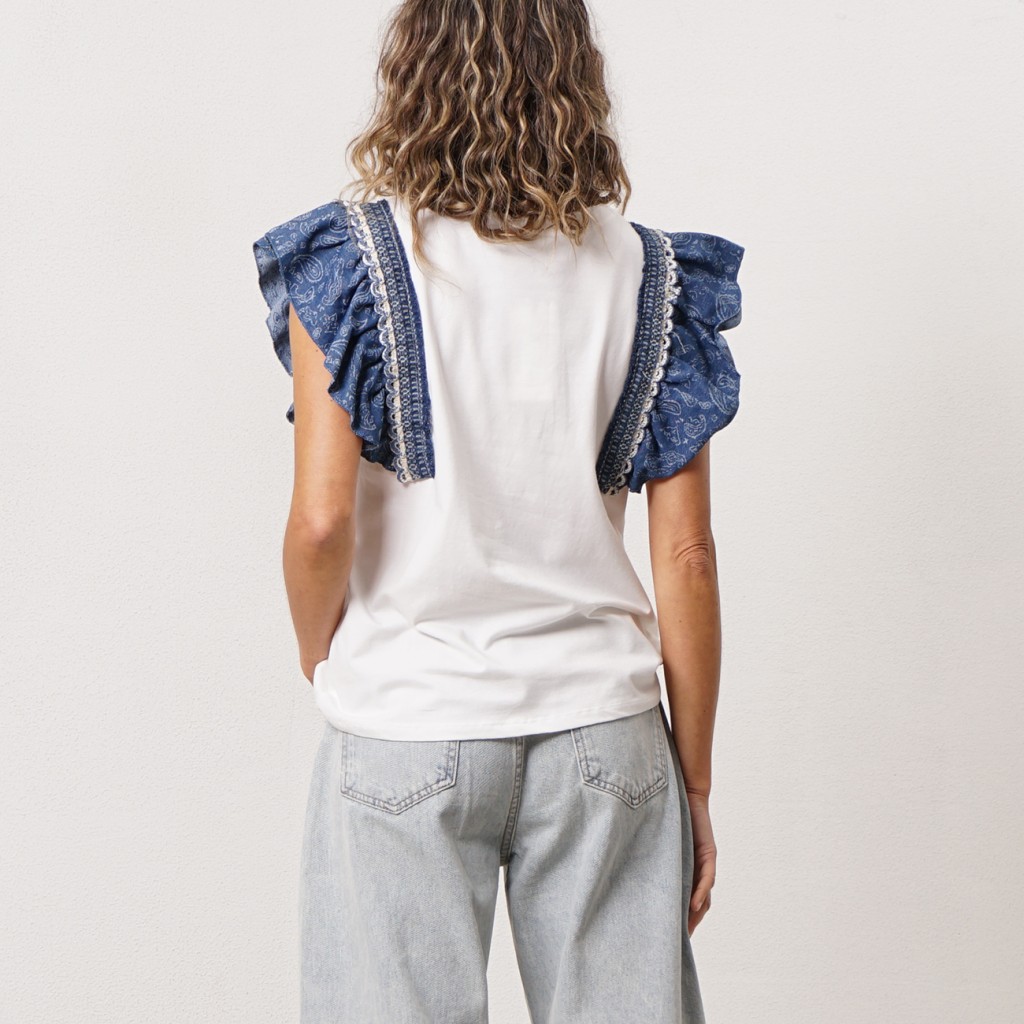 tshirt c/ aplicação de tecidos em algodão e elastano