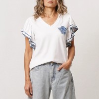 tshirt c/ aplicação de tecidos em algodão e elastano