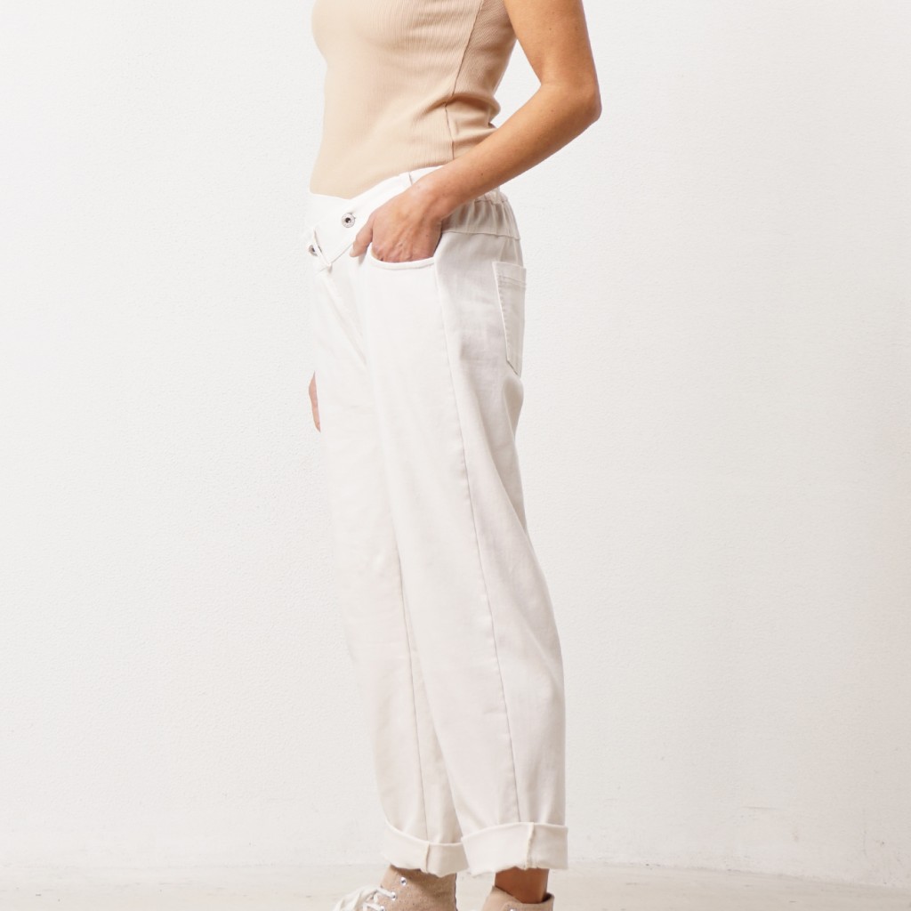 Composição: 77% viscose, 18% poliester, 5% elastano