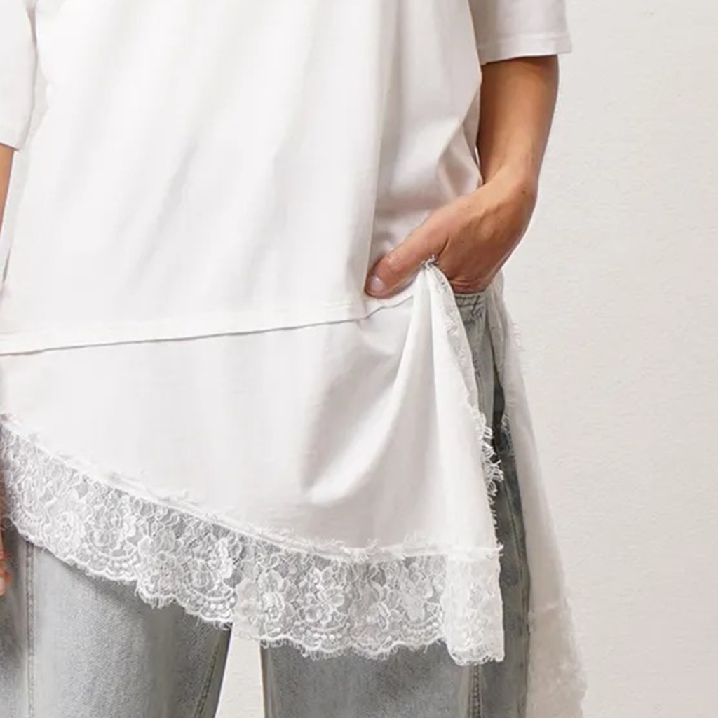 túnica em algodão c/ aplicação de renda